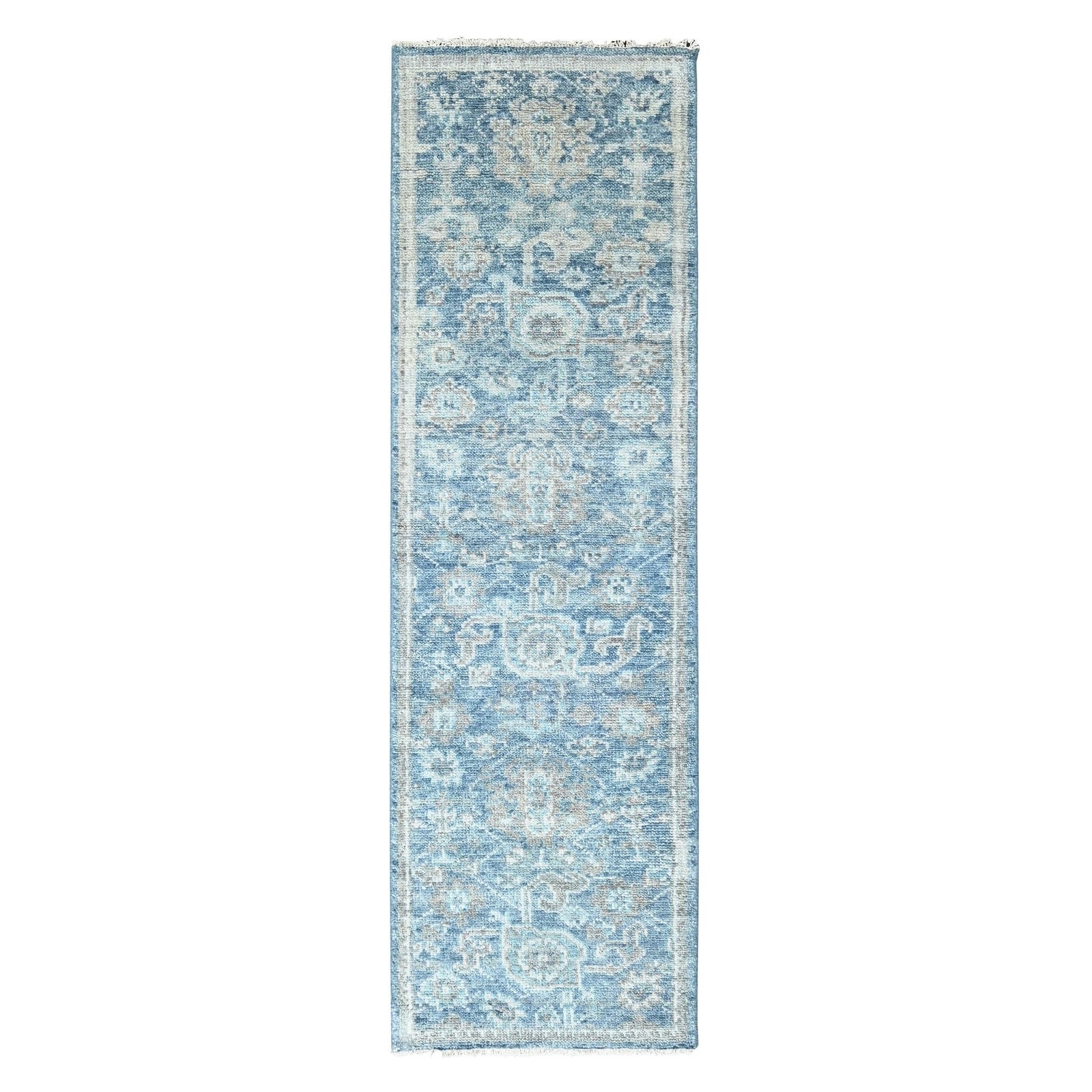 2'6"X8'5" Imperial Blue Oushak Design Hand Knotted Soft Wool Runner Rug