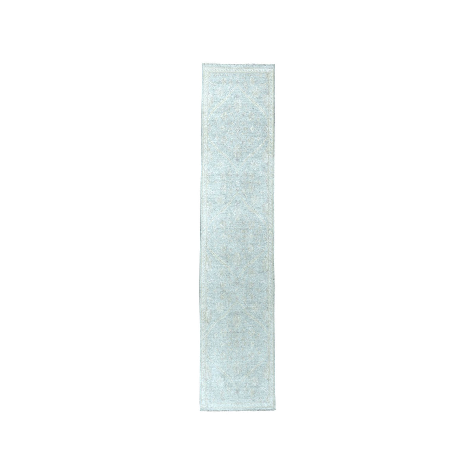 2'7"X9'9" White Wash Peshawar Pure Wool Handmade Oriental Runner Rug