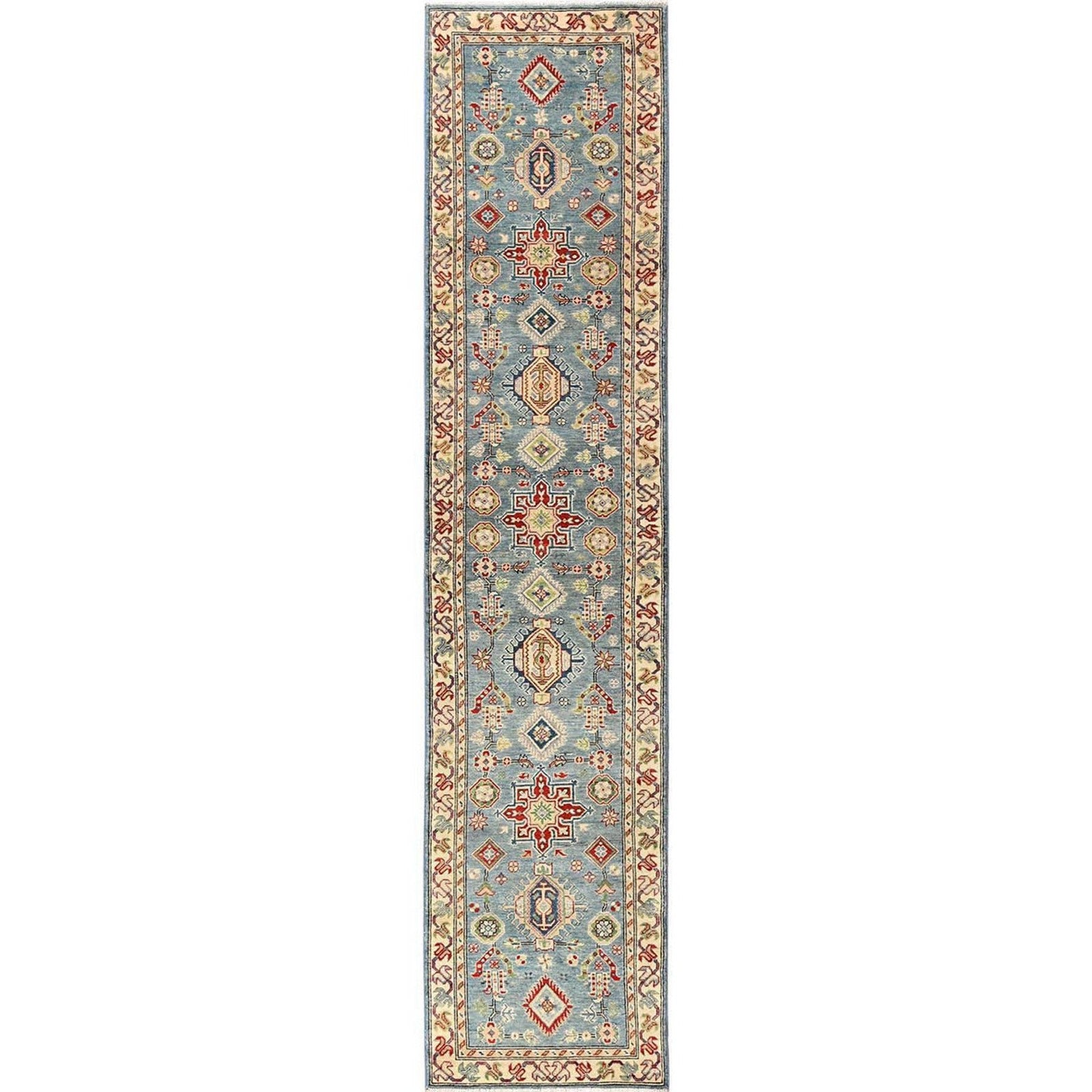 2'9"X12'9" Blue Kazak With Geometric Design Rug Hand Knotted Wool Runner