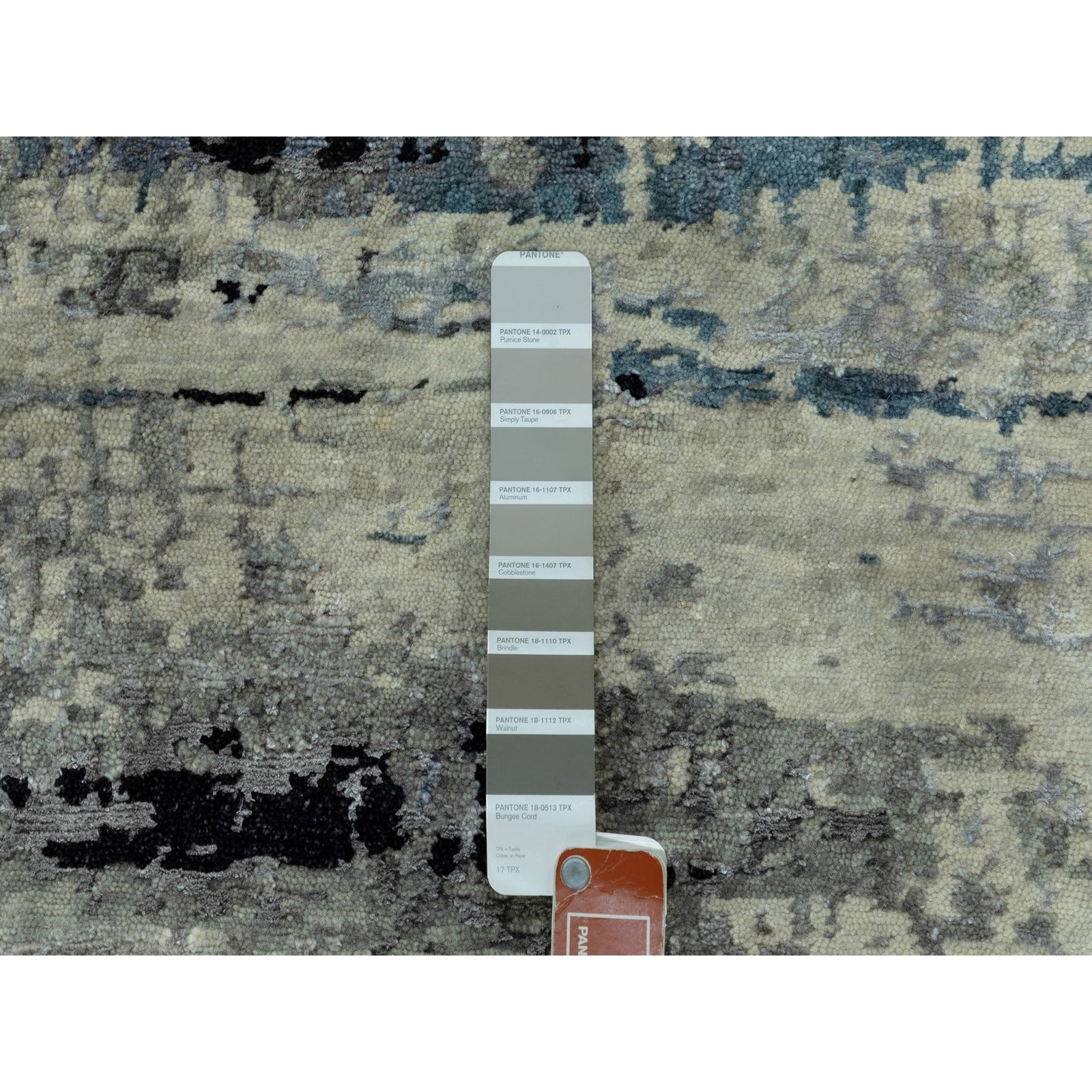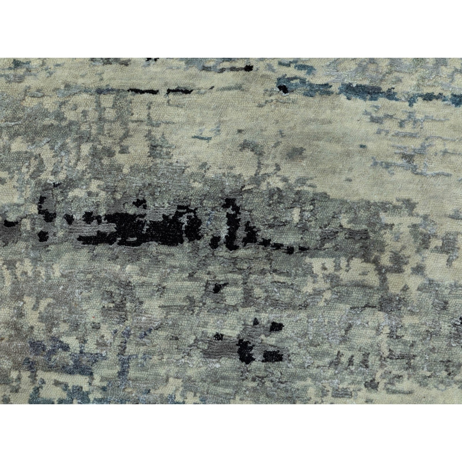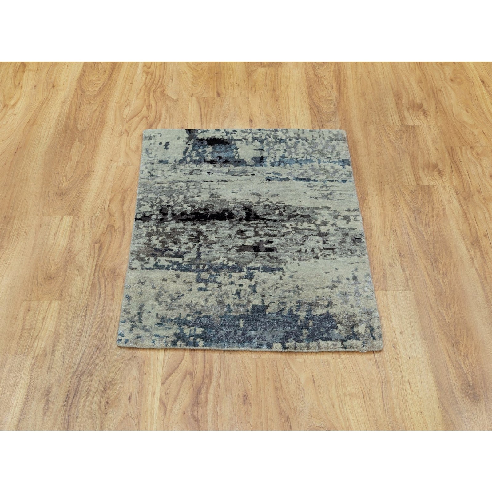 2'X2'10" Abstract Design Hilow Pile Silver-Blue Handknotted Wool-Silk Rug