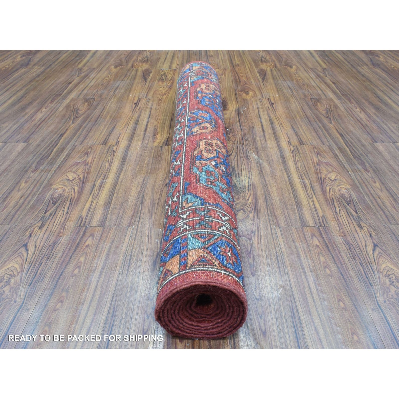 4'1"X11'3" Red Wool Hand Knotted Afghan Ersari Wide Runner Rug