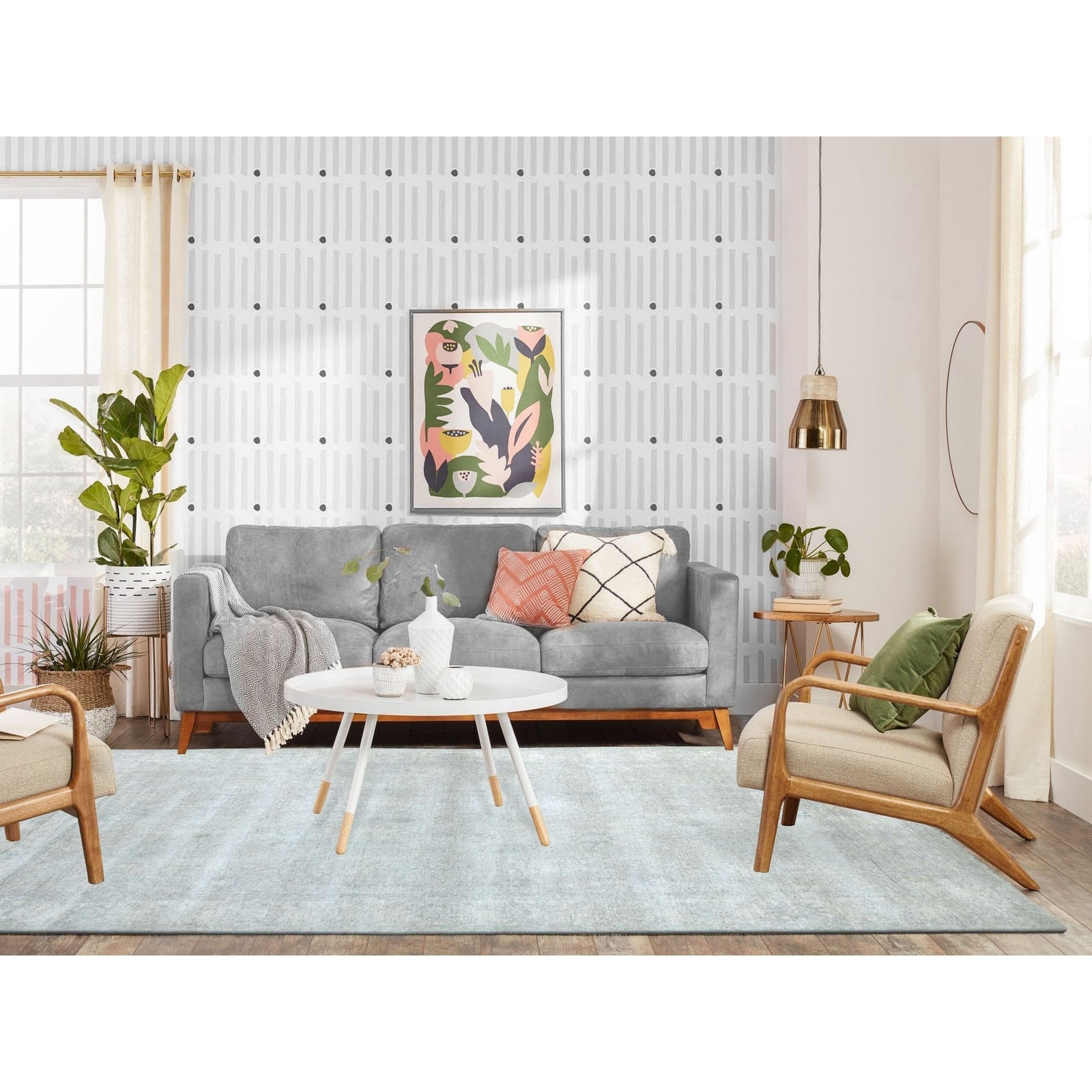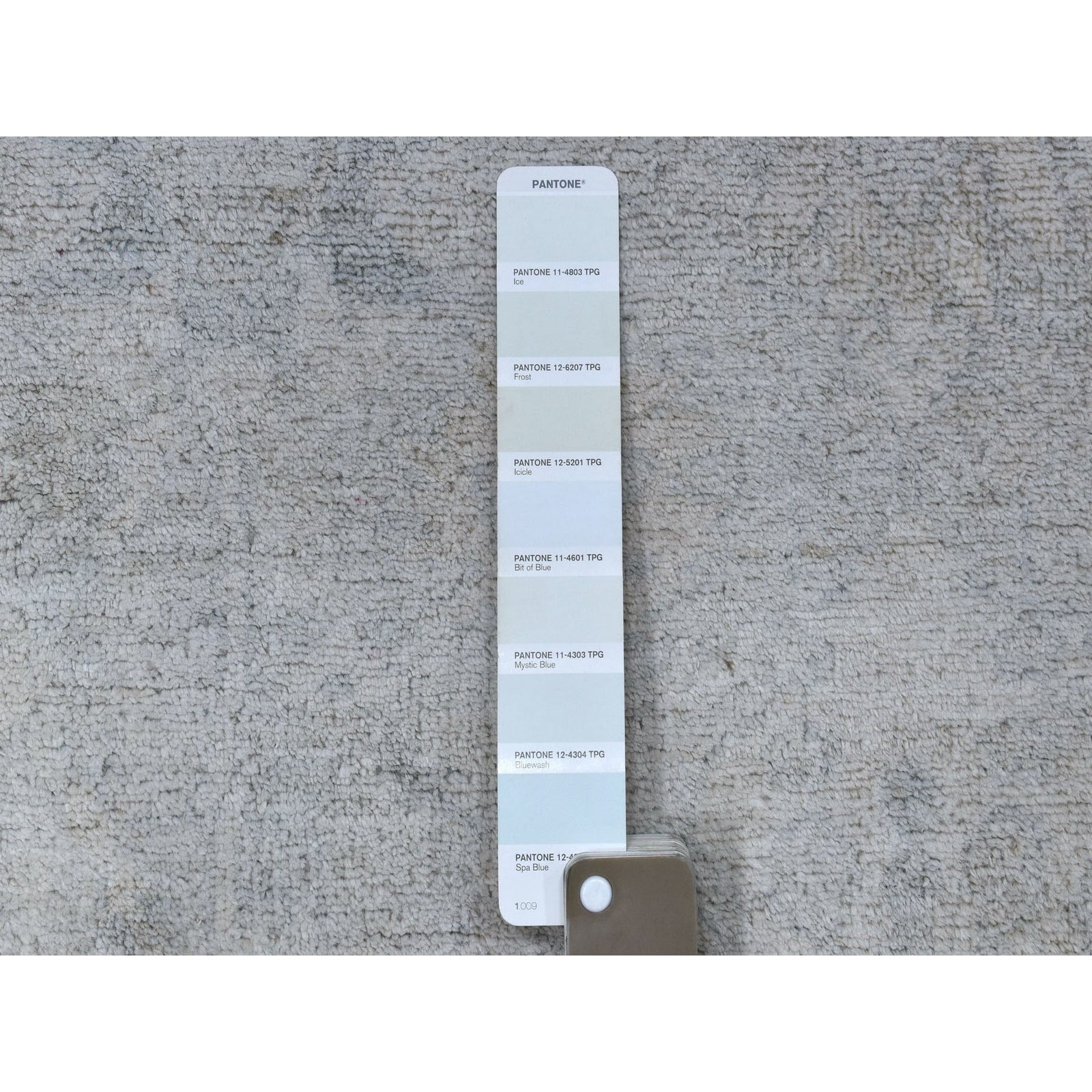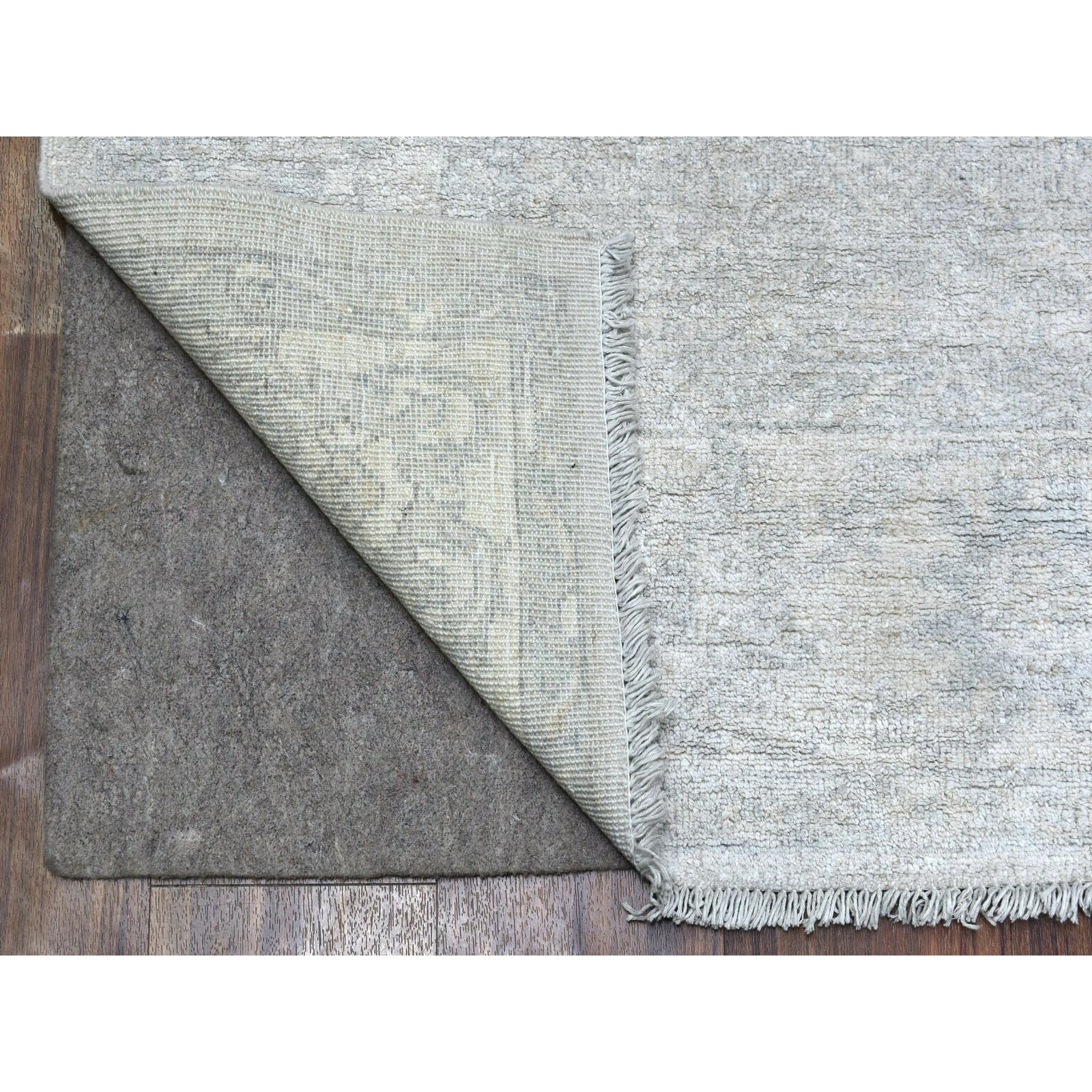 6'1"X9' Hand Knotted With Faded Colors White Wash Peshawar Shiny Wool Rug