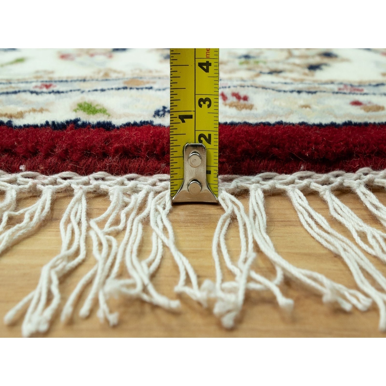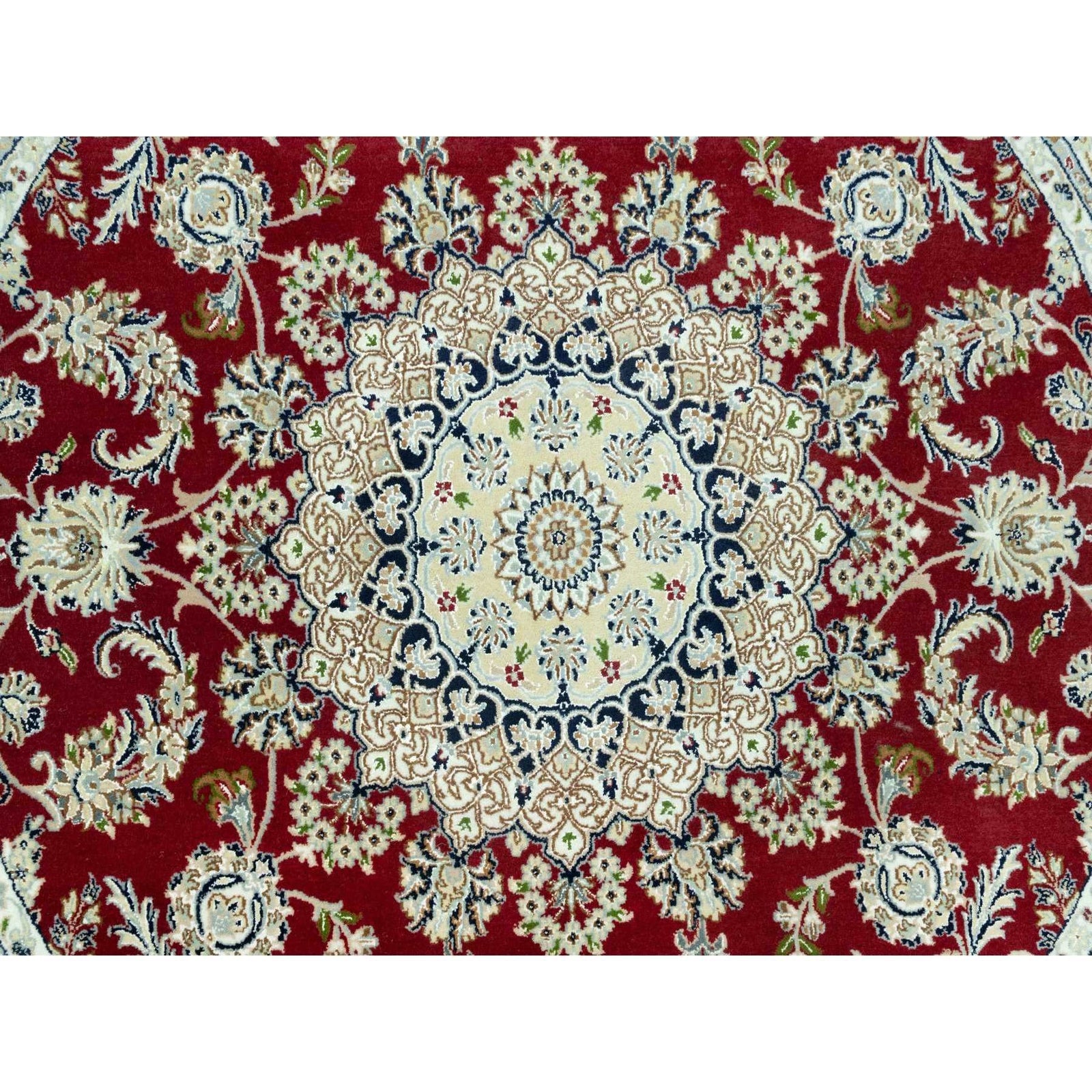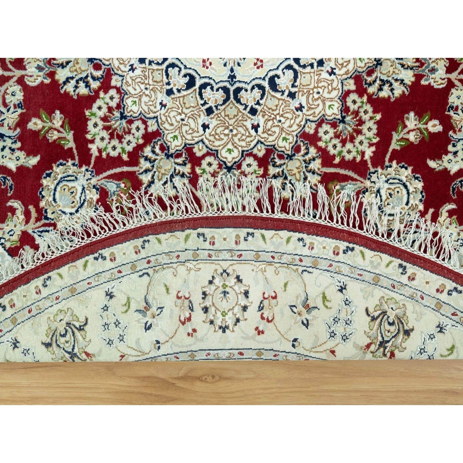 7'X7' Portia Red Hand Knotted Nain 250 Kpsi All Wool Oriental Round Rug