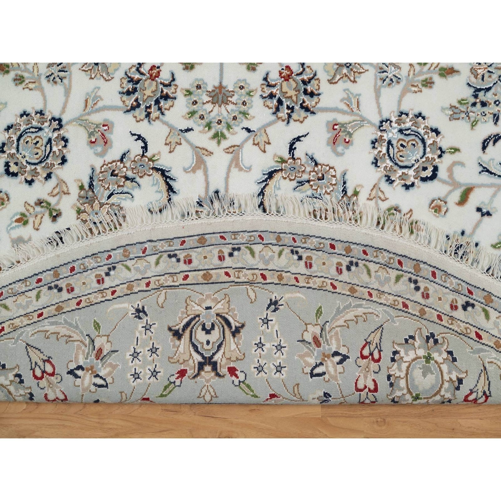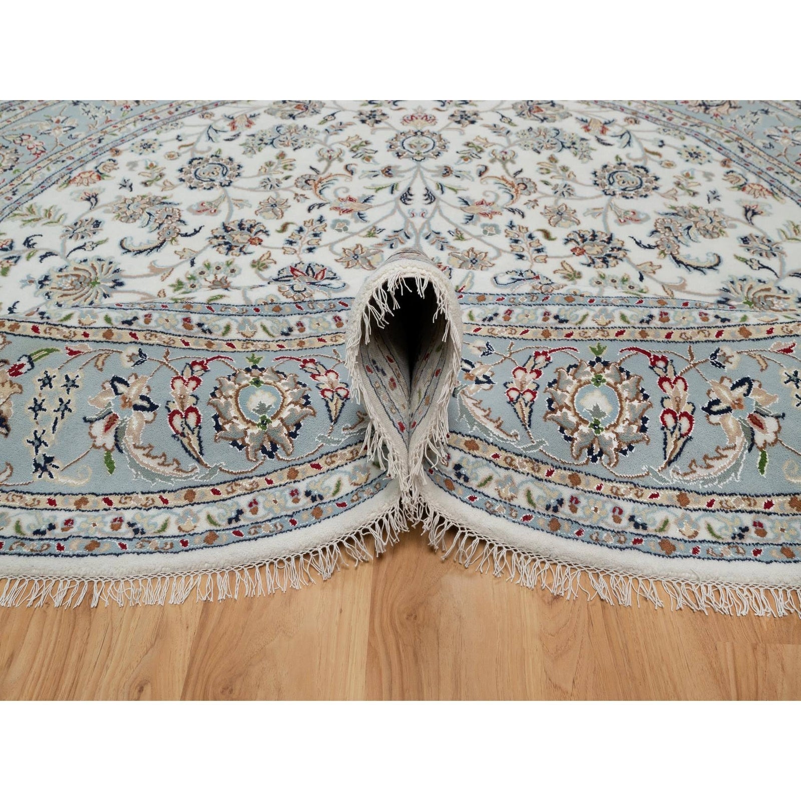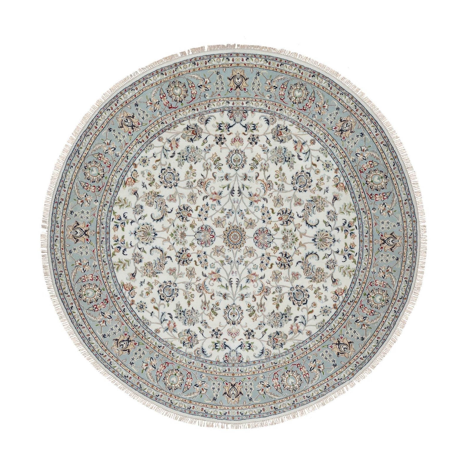 8'X8' Pearl White, 250 Kpsi, Nain, Wool And Silk, Hand Knotted, Round Rug
