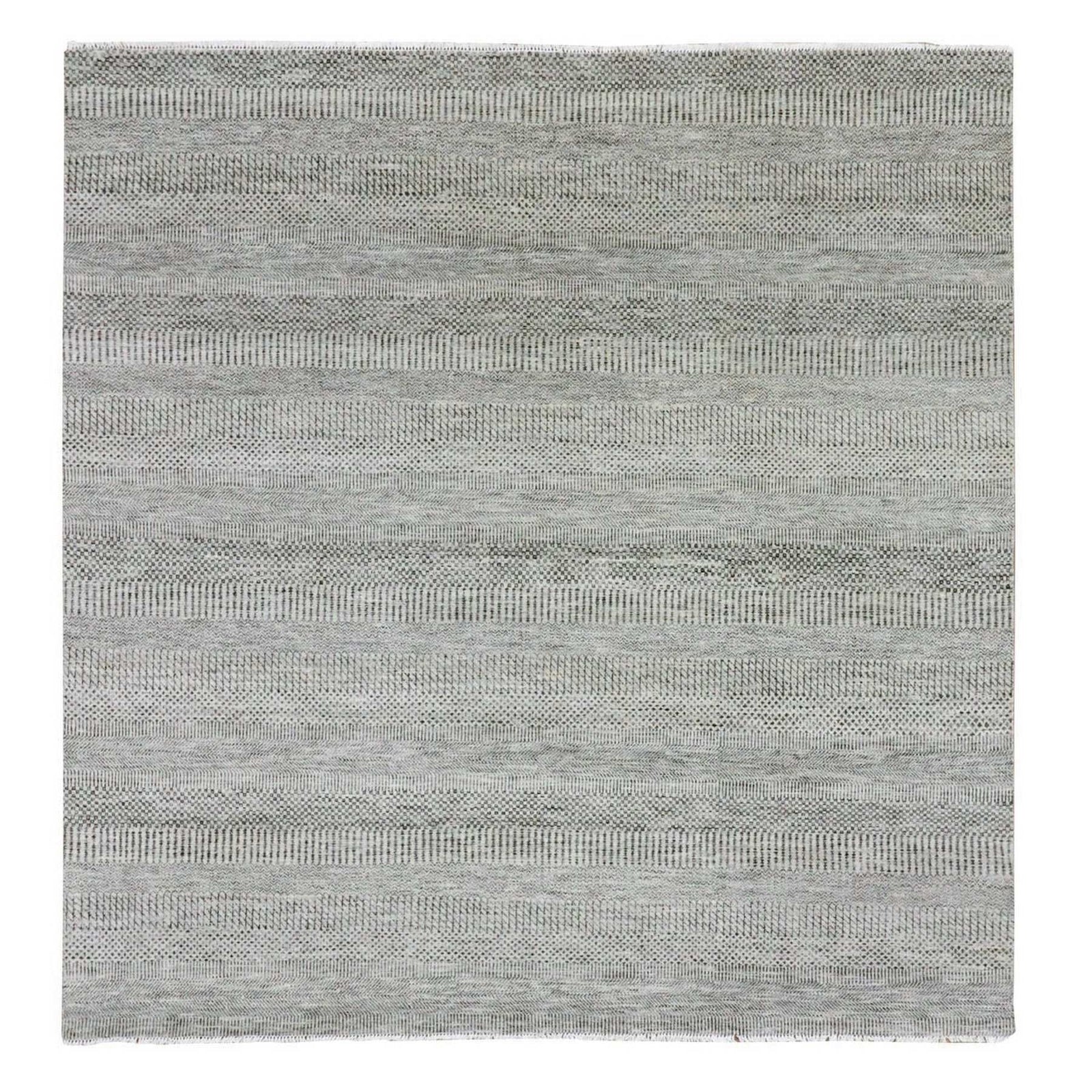 8'X8' Silver Gray Grass Design Undyed 100% Wool Hand Knotted Square Rug
