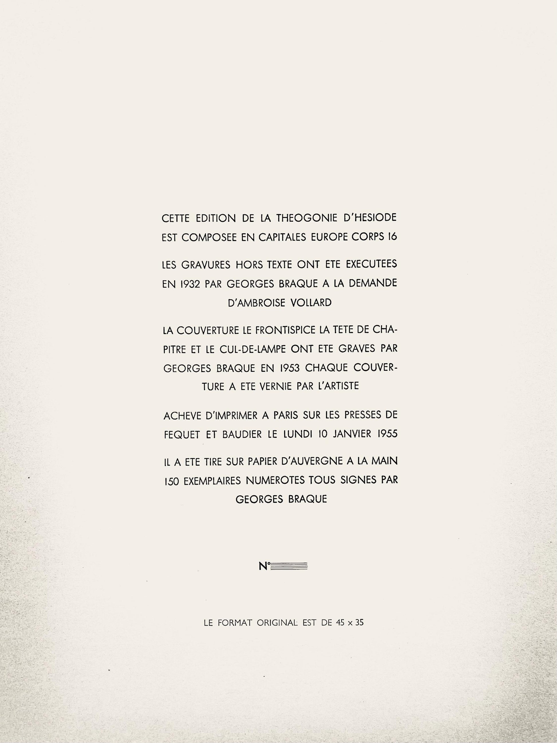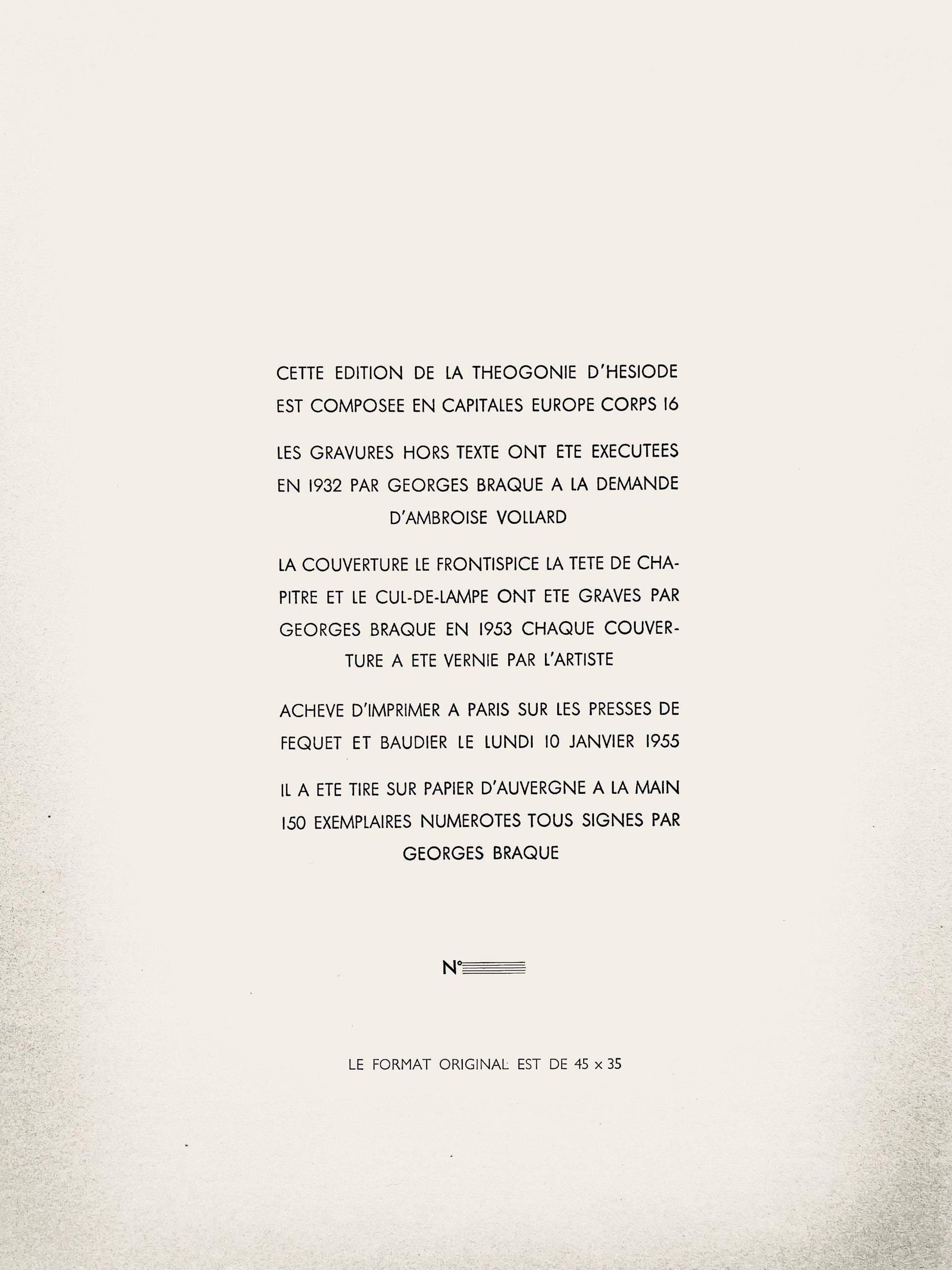 Notes: From the folio, Derrire le miroir, Hsiode, Thogonie, Eaux-fortes de Georges Braque, N 71-72, 1954.