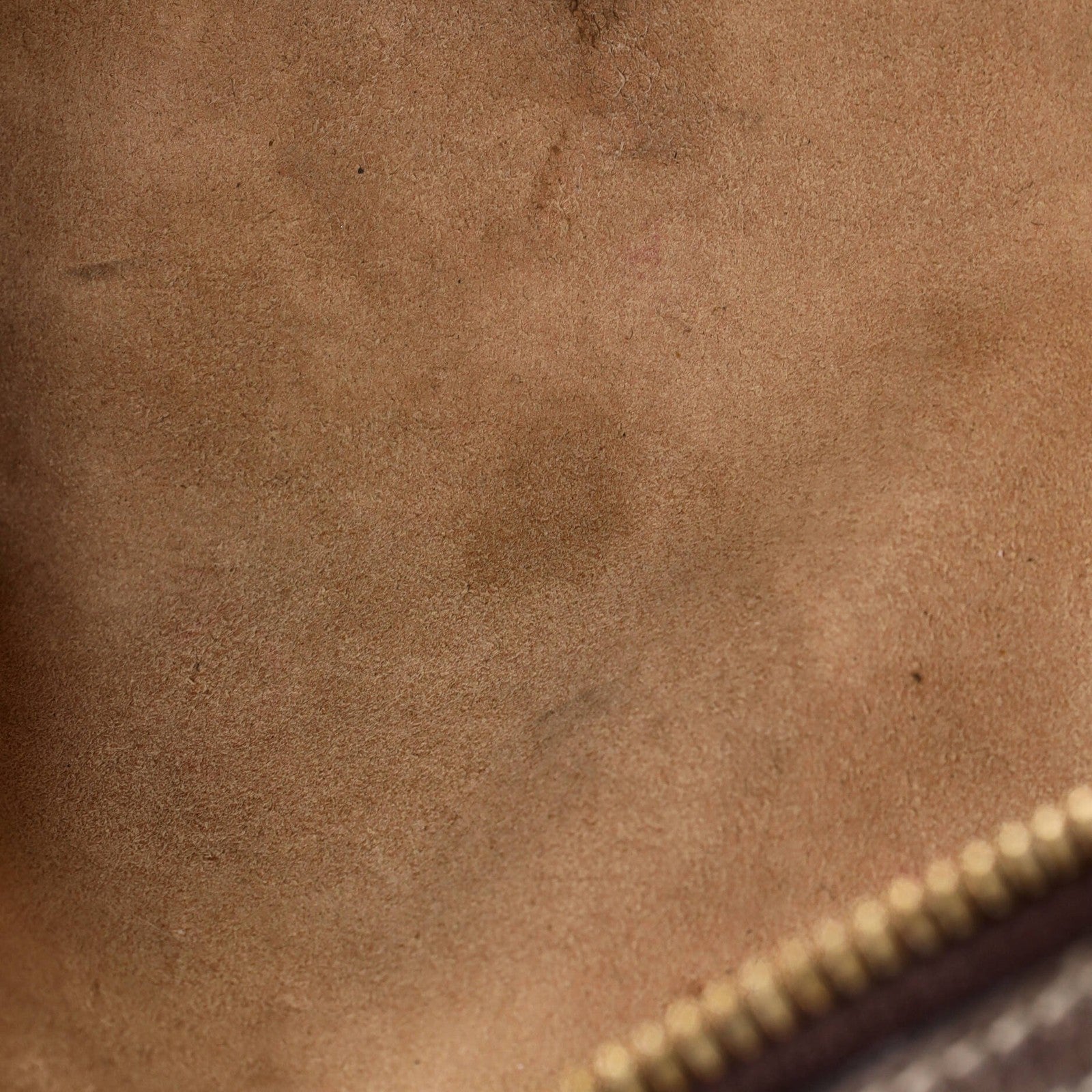 Condition: Very good. Exterior: corner wear, minor creases. Handles/Straps: splitting on belt loop trim , minor creases. Interior: scuffs, discoloration. Hardware: scratches, tarnished