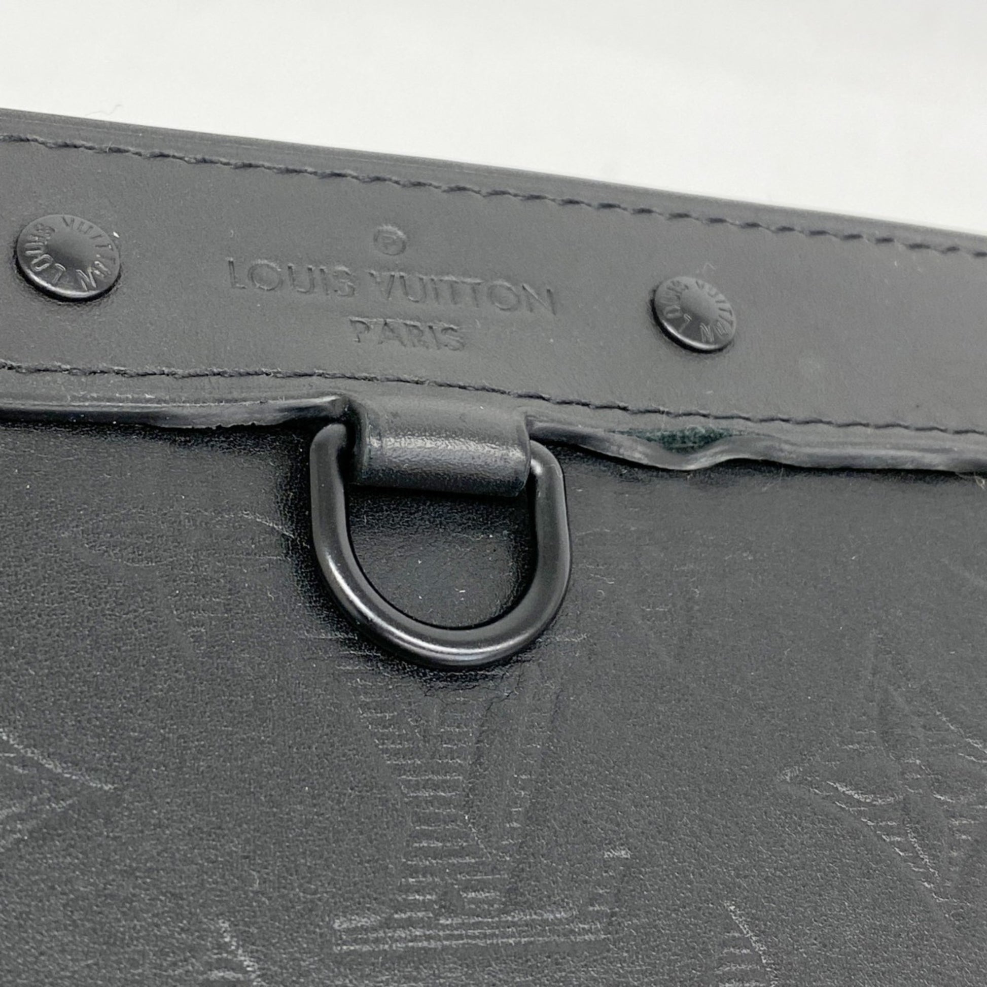 Louis Vuitton Monogram Shadow Pochette Discovery Clutch Bag M62903 Black