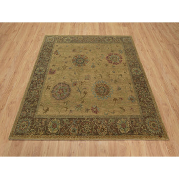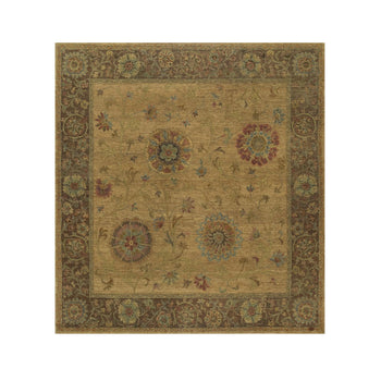 5'5"X5'10" Brown Botanical Design Himalayan Wool Hand Knotted Square Rug
