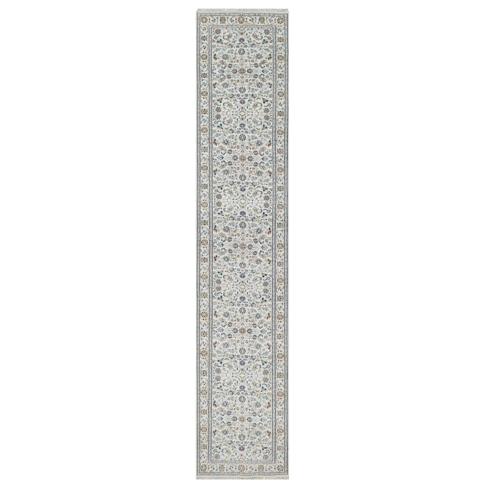 2'9"X14'1" Rice White Nain Wool And Silk Hand Knotted 250 Kpsi Runner Rug