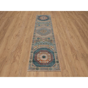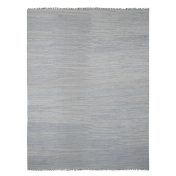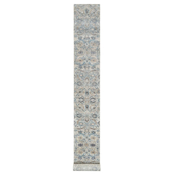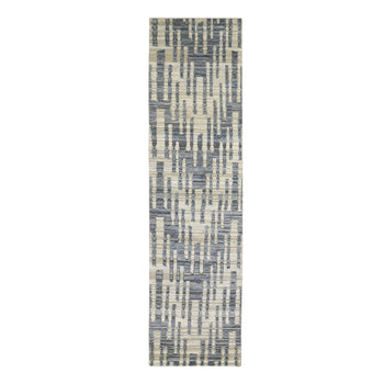 2'6"X10'3" Blue Pure Silk And Textured Wool Wide Runner Hand Knotted Rug