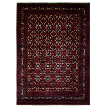 10'X13'8" Red Afghan Khamyab Soft Wool Geometric Design Hand Knotted Rug