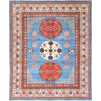 6'X9'1" Pink Afghan Angora Oushak Leaf Design Hand Knotted Pure Wool Rug