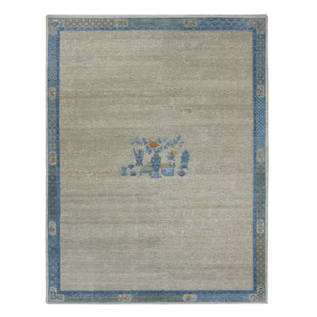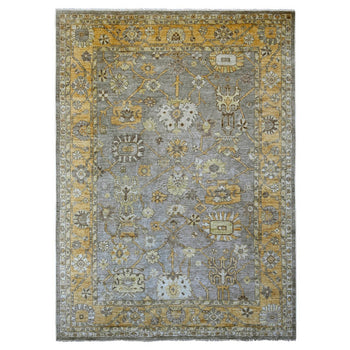8'9"X12' Gray Pure Wool Rug Hand Knotted Afghan Angora Oushak Leaf Pattern