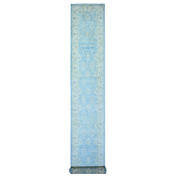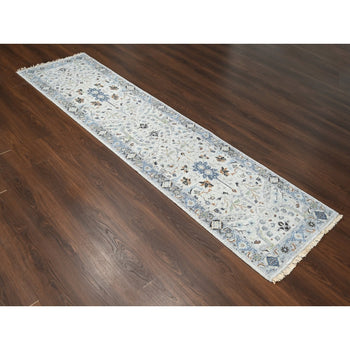 2'8"X14'3" Ivory Antiqued Heris Re-Creation Hand Knotted Wool Runner Rug