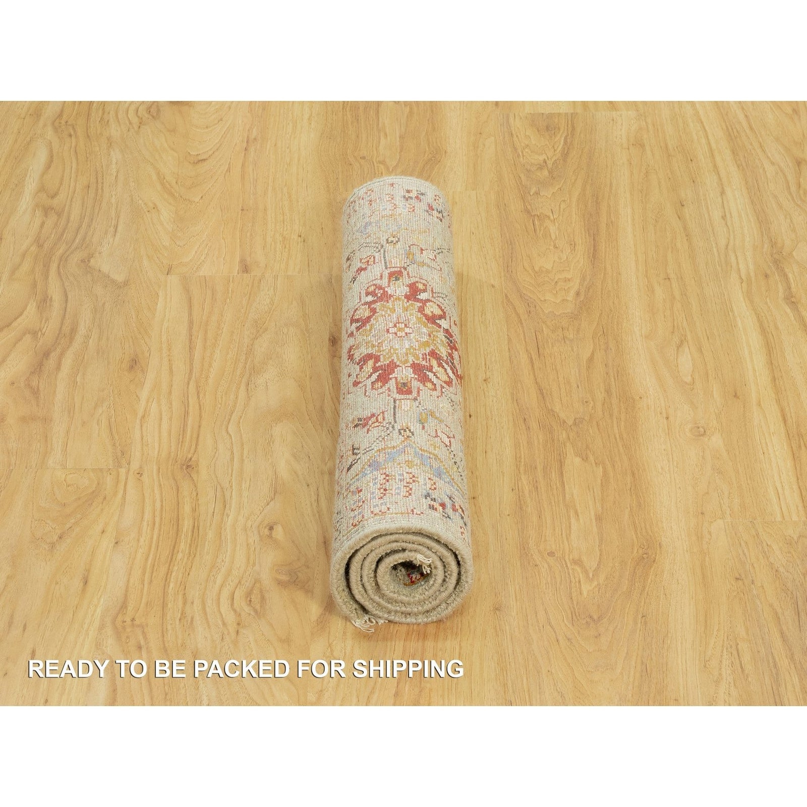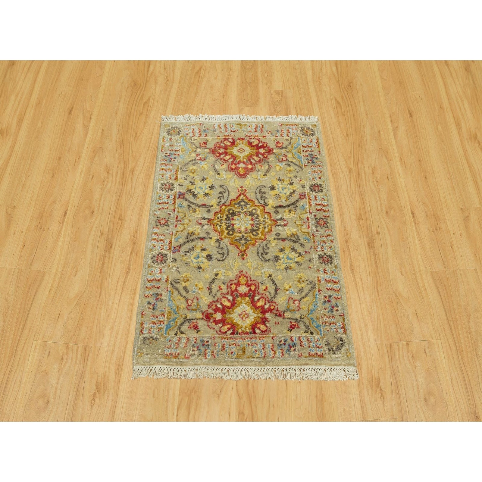 Rug 2'3"x3' Beige Wool and Silk Sunset Hand Knotted Runner Oriental