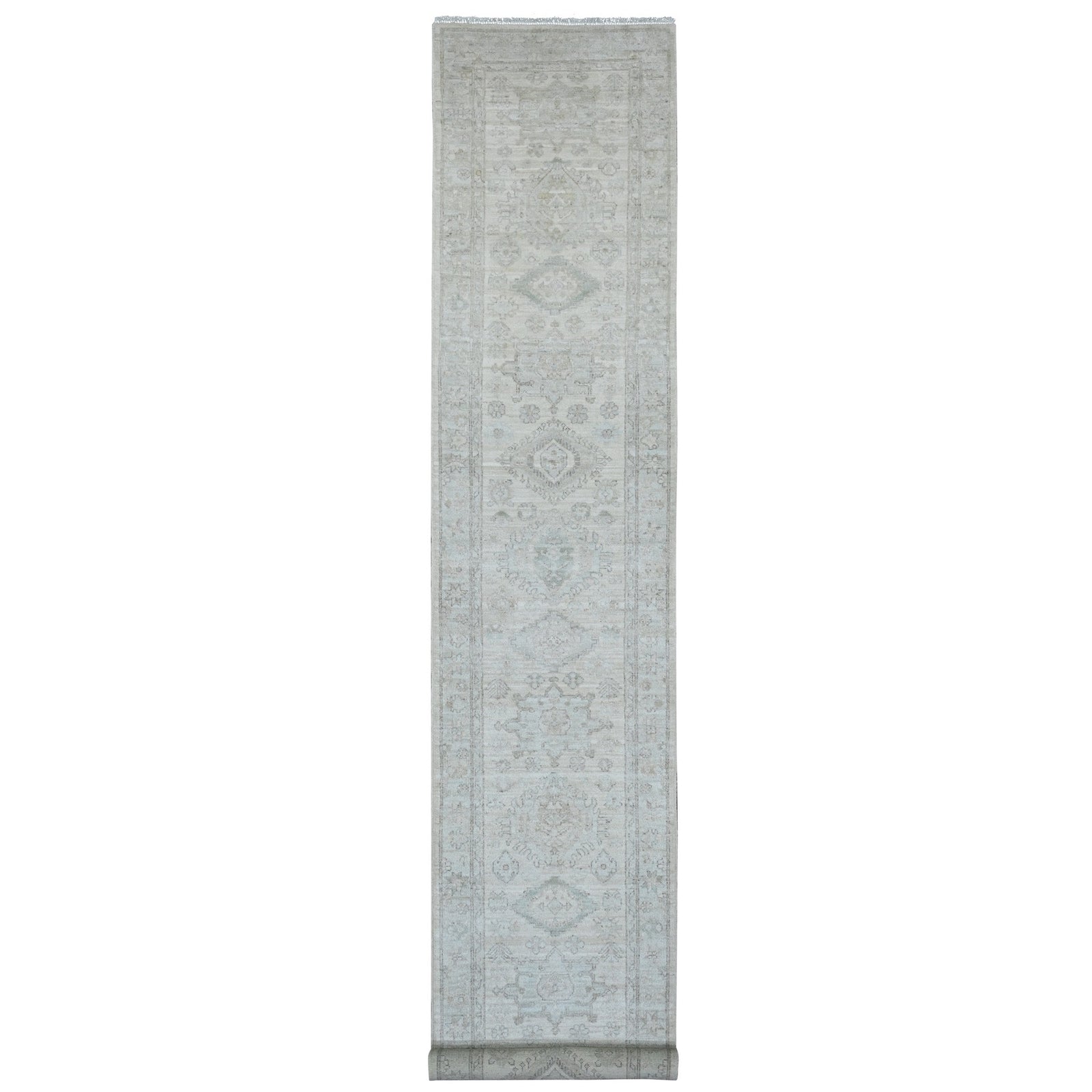 Rug 2'8"x16' White Wash Peshawar Leaf Design Hand Knotted All Wool Runner