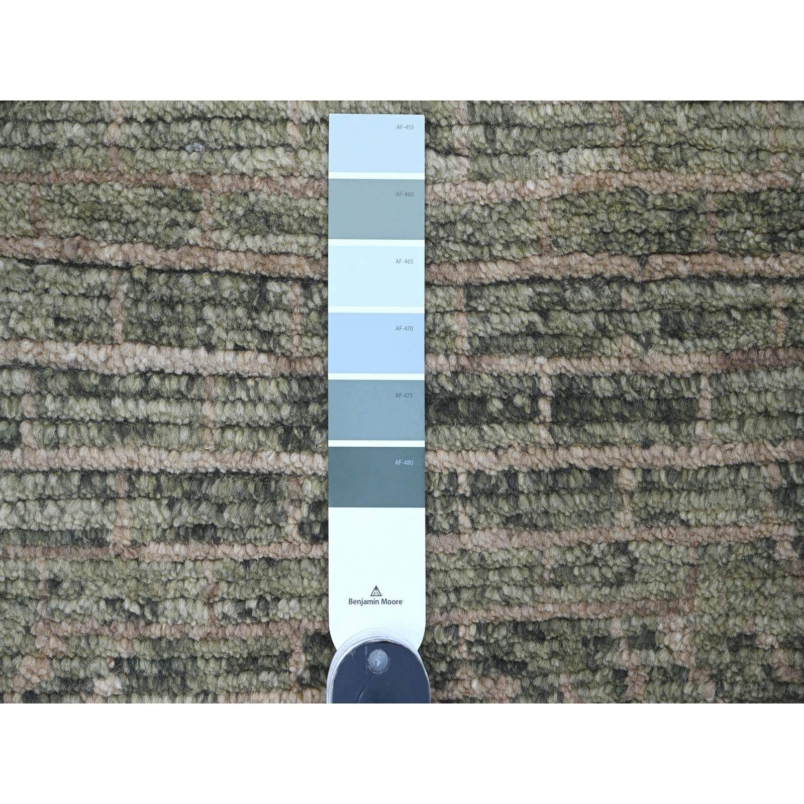 Rug 4'5"x7'8" Green Moroccan Weave Brick Pattern Hand Knotted Soft Wool