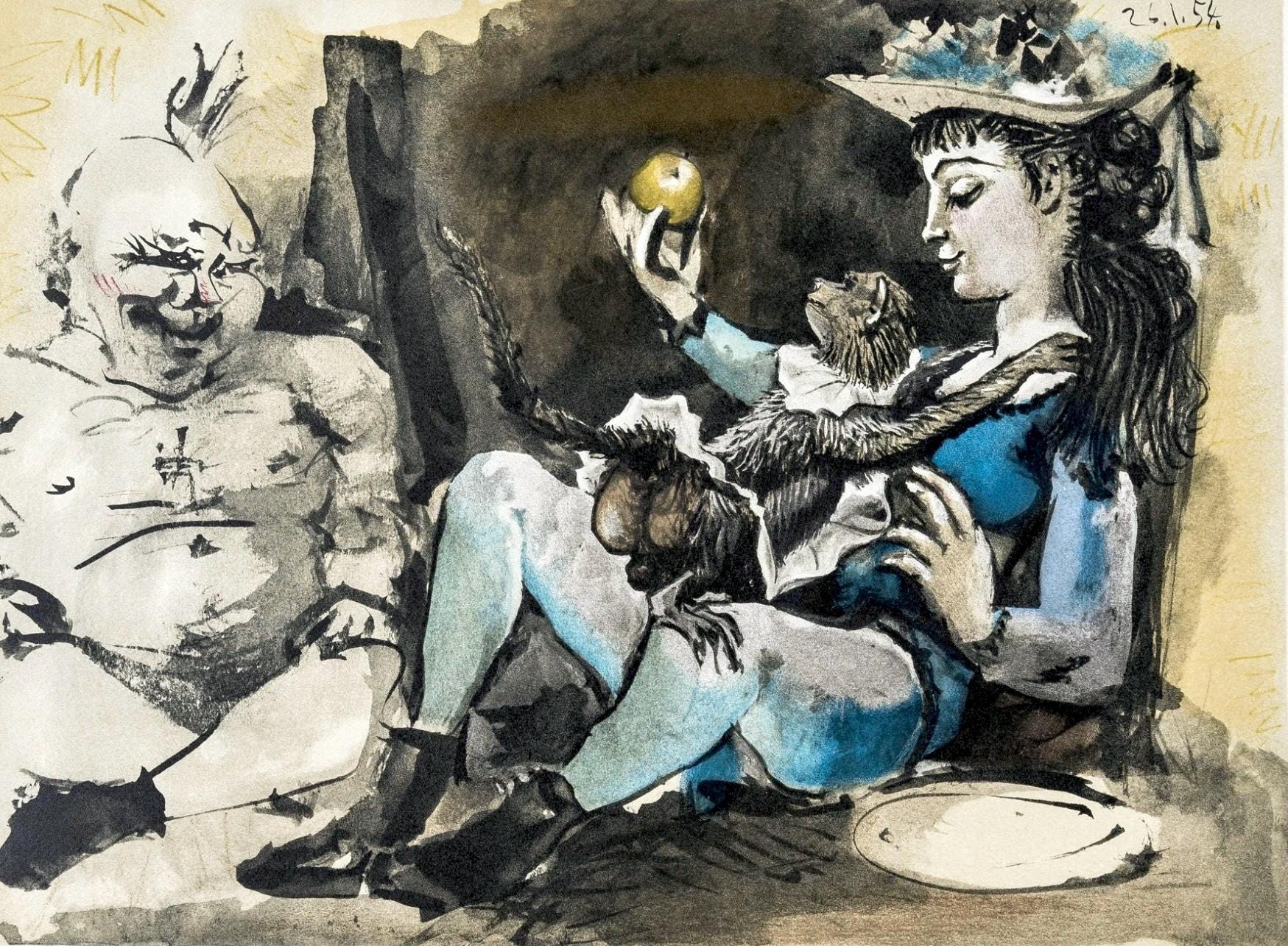 Excerpted from the publisher (translated from French), Last winter, from mid-December to the end of January 1954 Picasso was working indefatigably on this series of drawings, which rank among the finest, boldest, most poignantly human of all he has produced in the course of his long and brilliant career...