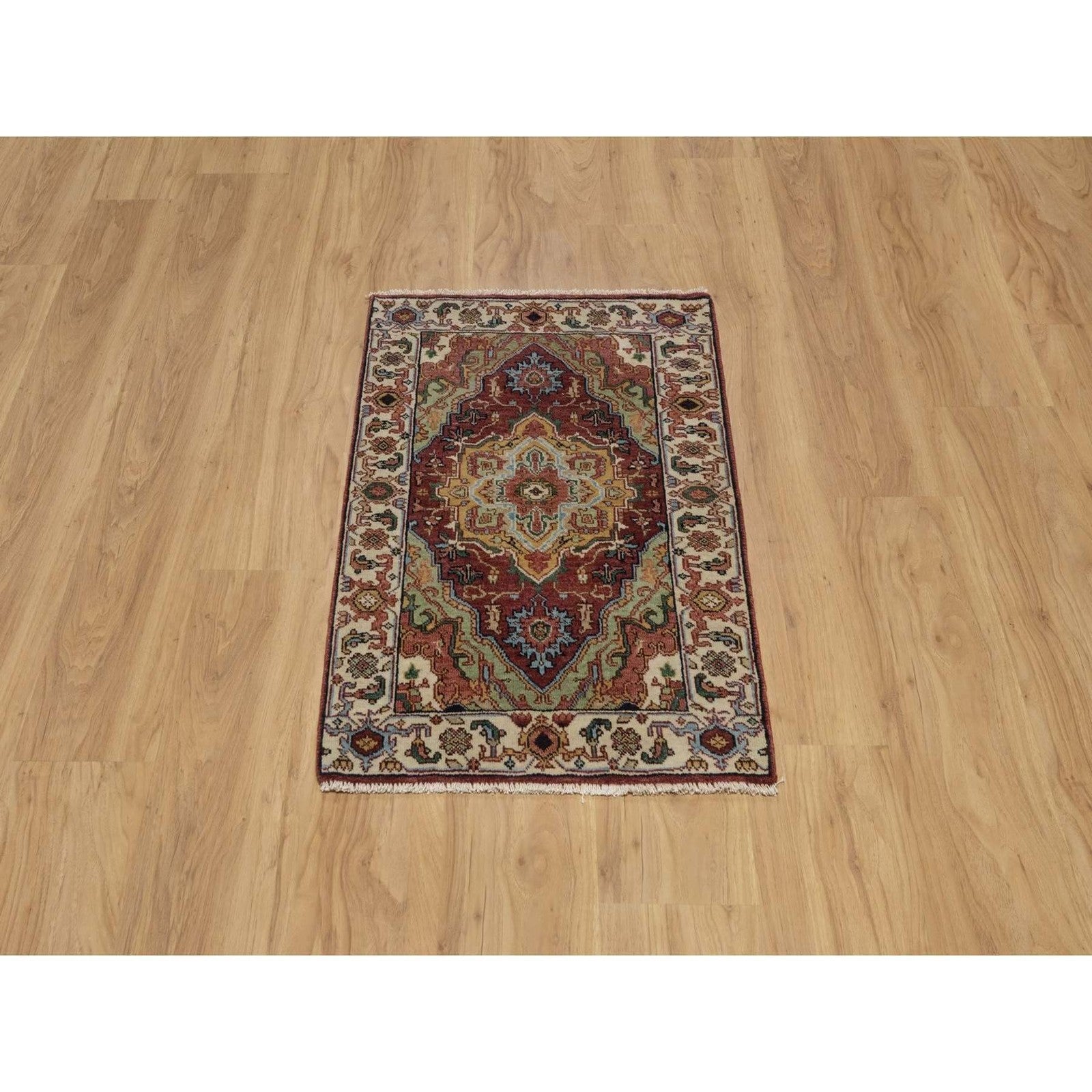Rug 2'1"x3' Red Antiqued Fine Heris Hand Knotted New Zealand Wool Mat