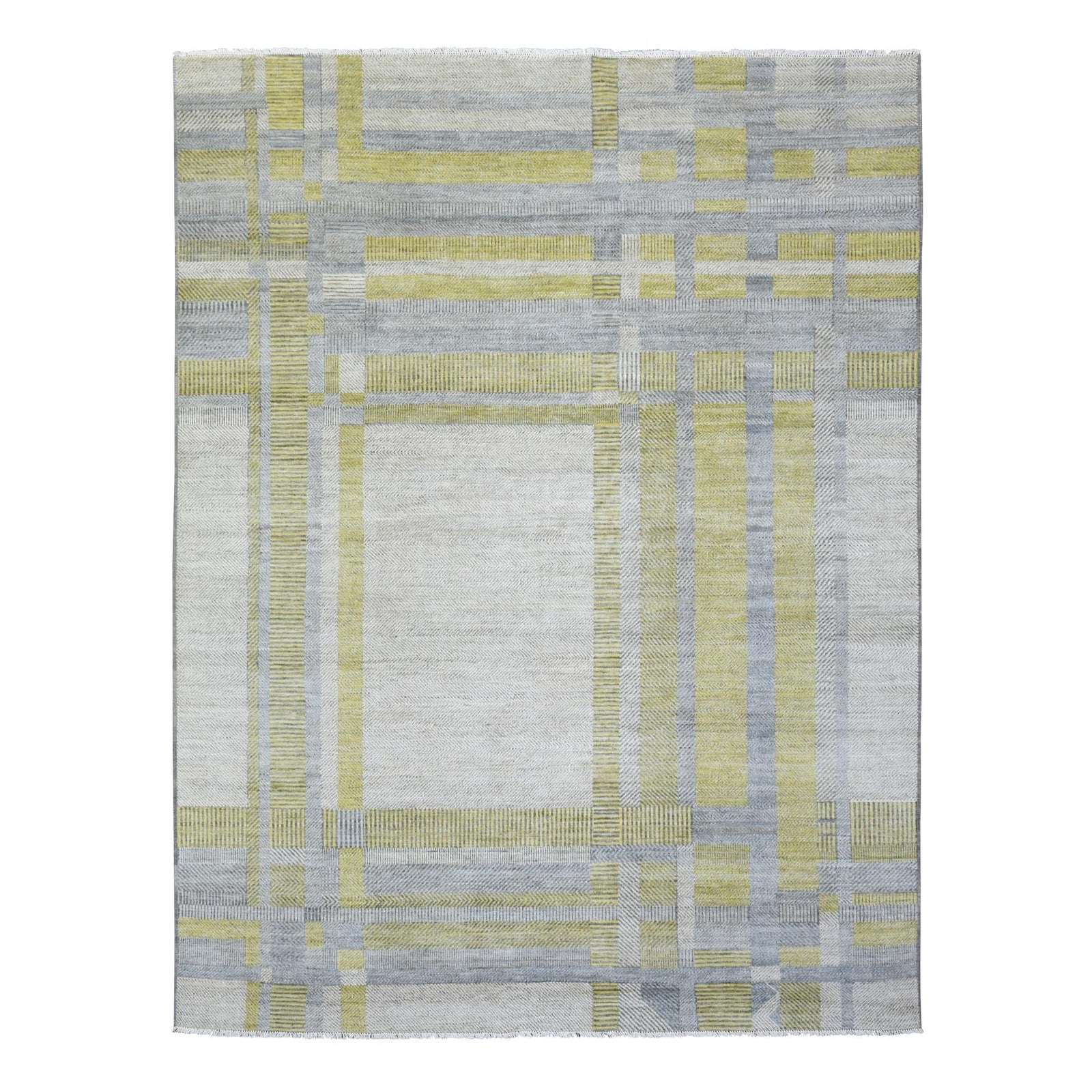 Rug 7'9"x10'2" Light Gray Modern Design Soft Organic Wool Hand Knotted