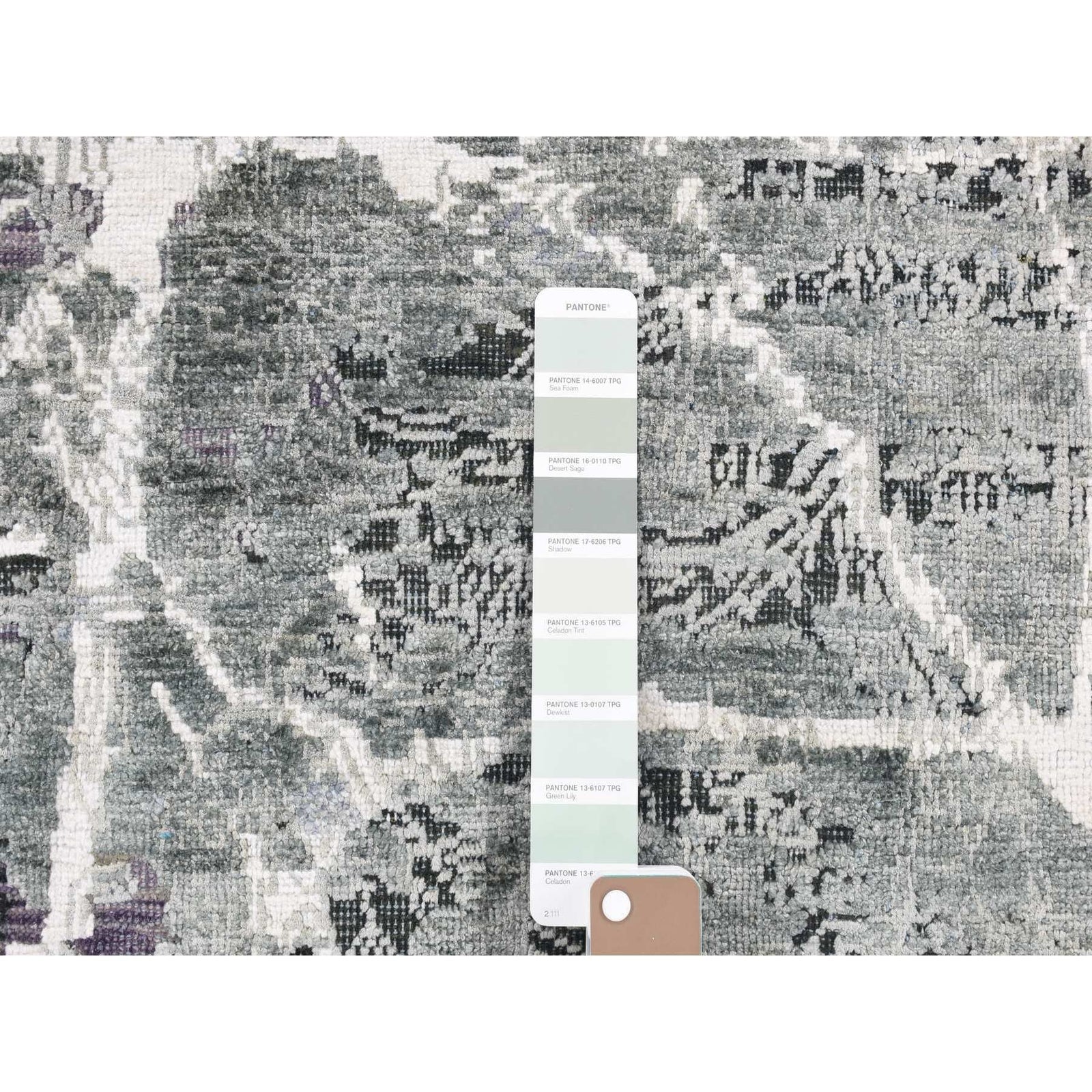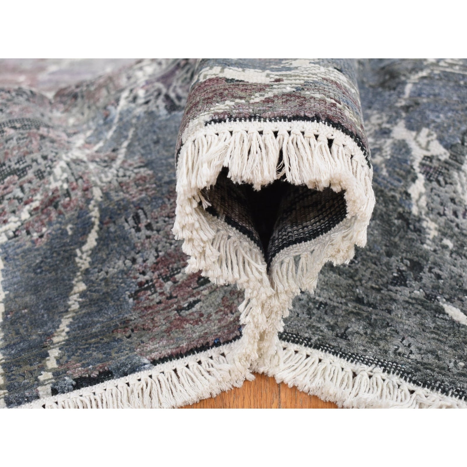 This listing features Rug 7'7"x10'1" Gray Hand Knotted Broken Zoroastrian Design Silk with Wool. Item specifics are provided below.