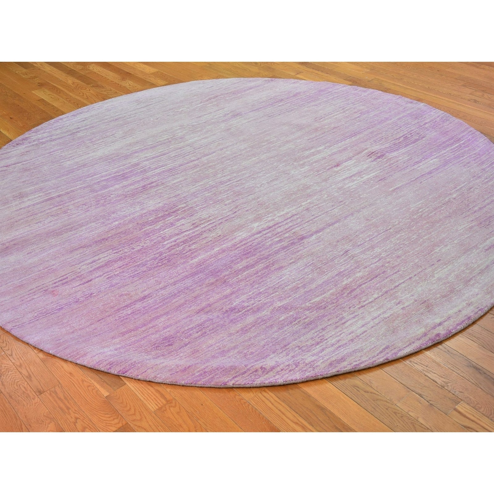 Rug 9'x9' Pink Zero Pile Organic Wool Ombre Design Hand Knotted Round