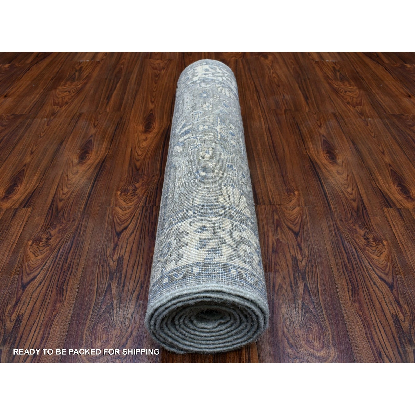 2'6"X9'9" Hand Knotted Gray Afghan Peshawar Extra Soft Wool Runner Rug