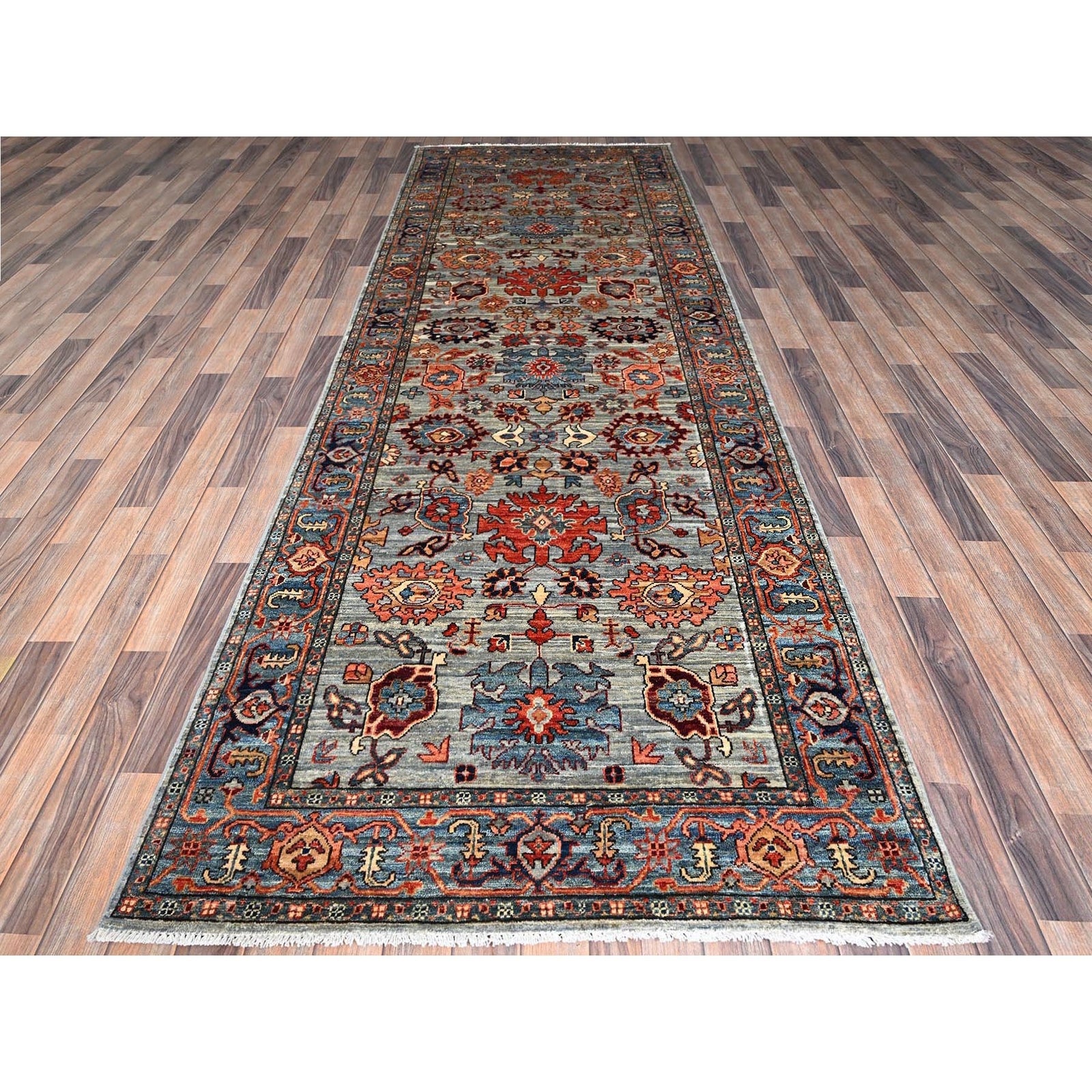 4'1"X11'9" Agate Gray Heris All Over Design Hand Knotted Wool Runner Rug
