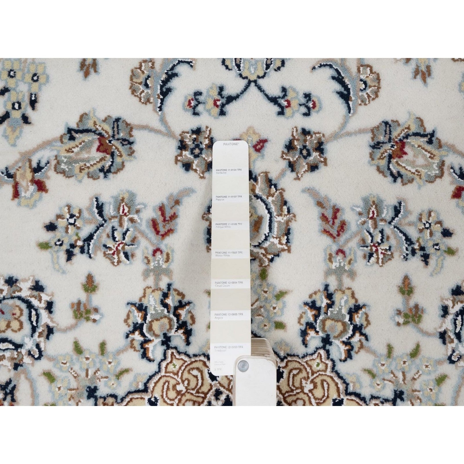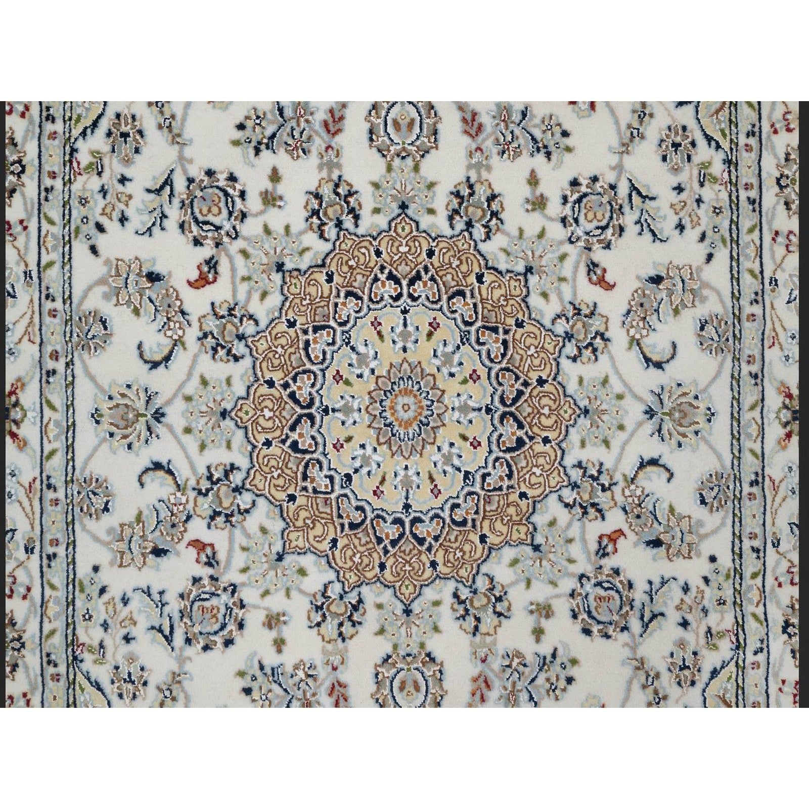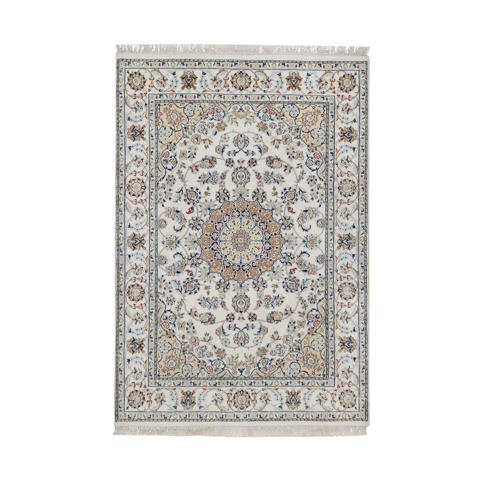 4'8"X6'10" Ivory Nain With Flower Design Hand Knotted Wool And Silk Rug