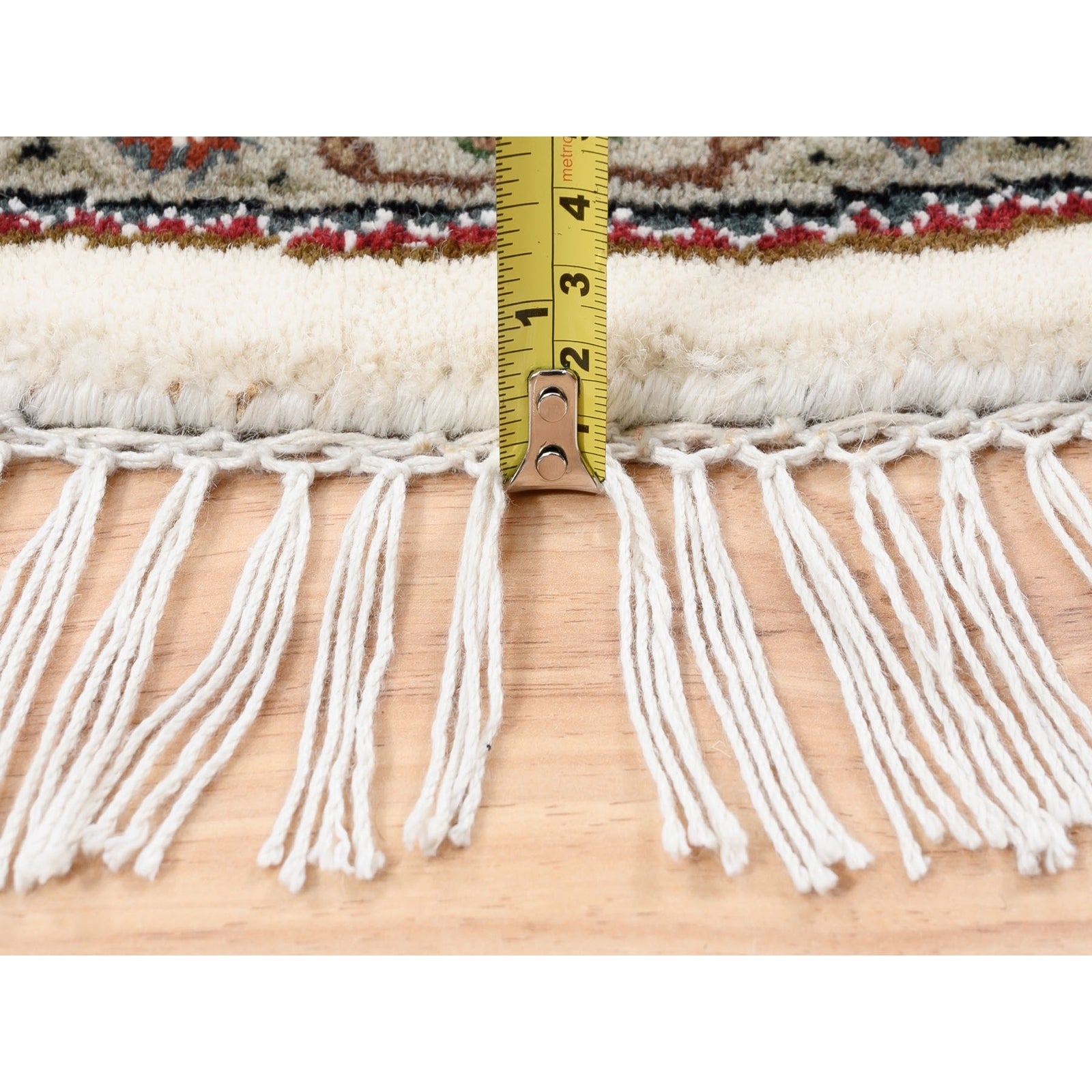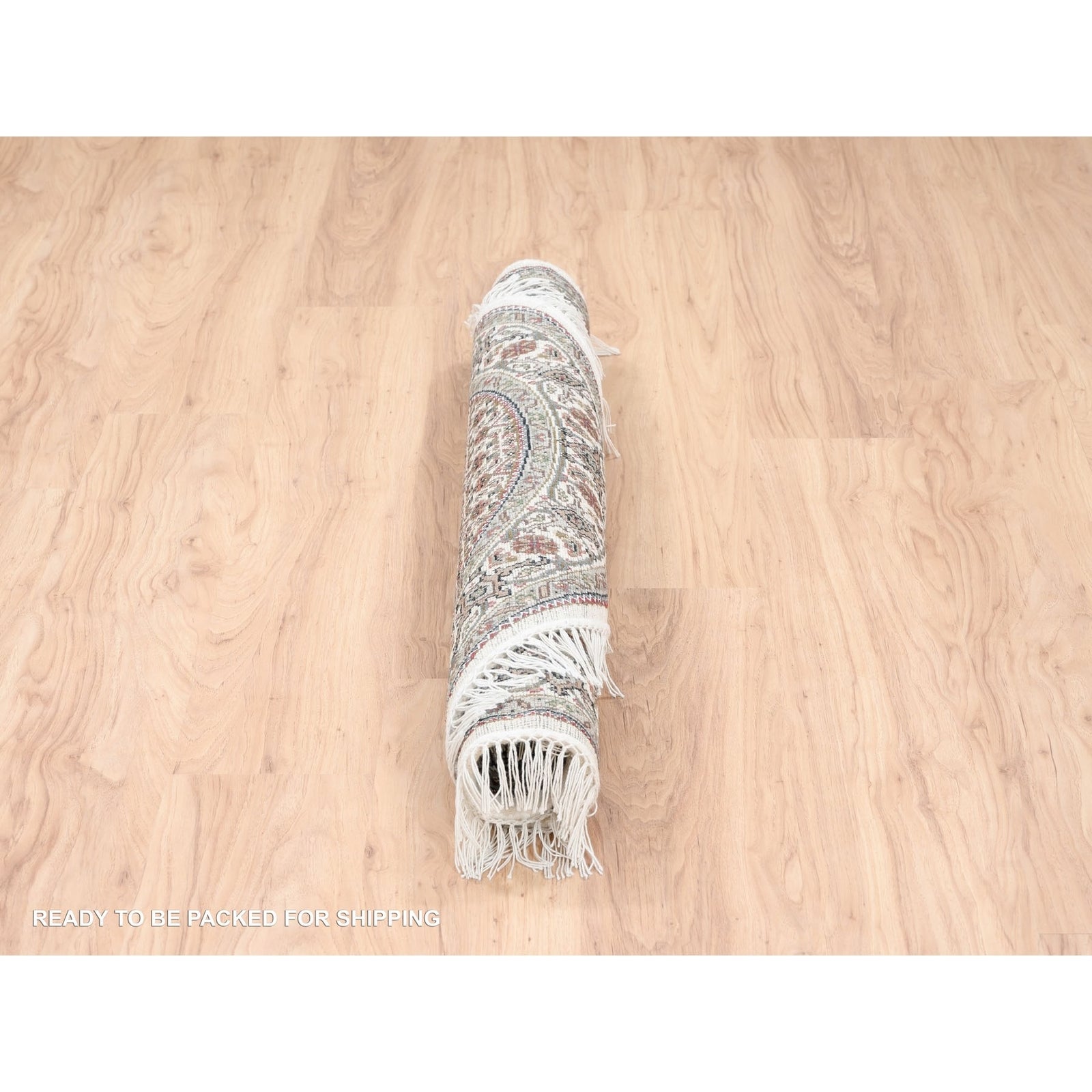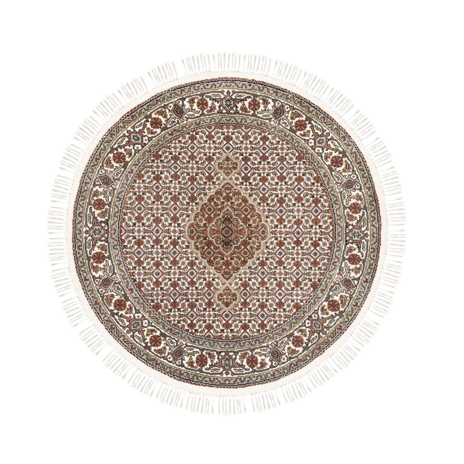 4'X4' Hand Knotted Wool-Silk Fish Medallion Design Tebraz Mahi Rug