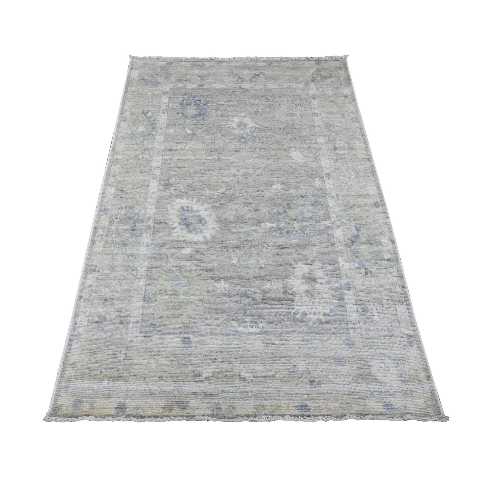 4'X5'10" Sonic Gray Hand Knotted Afghan Angora Oushak Wool Oriental Rug