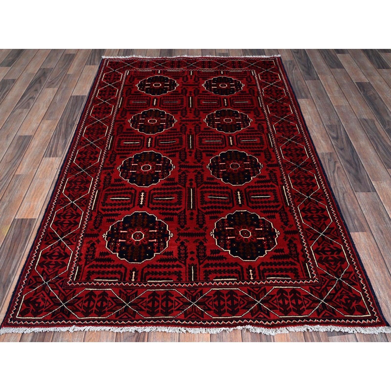 4'X6'4" Red Afghan Khamyab Tribal Medallions Design Wool Hand Knotted Rug