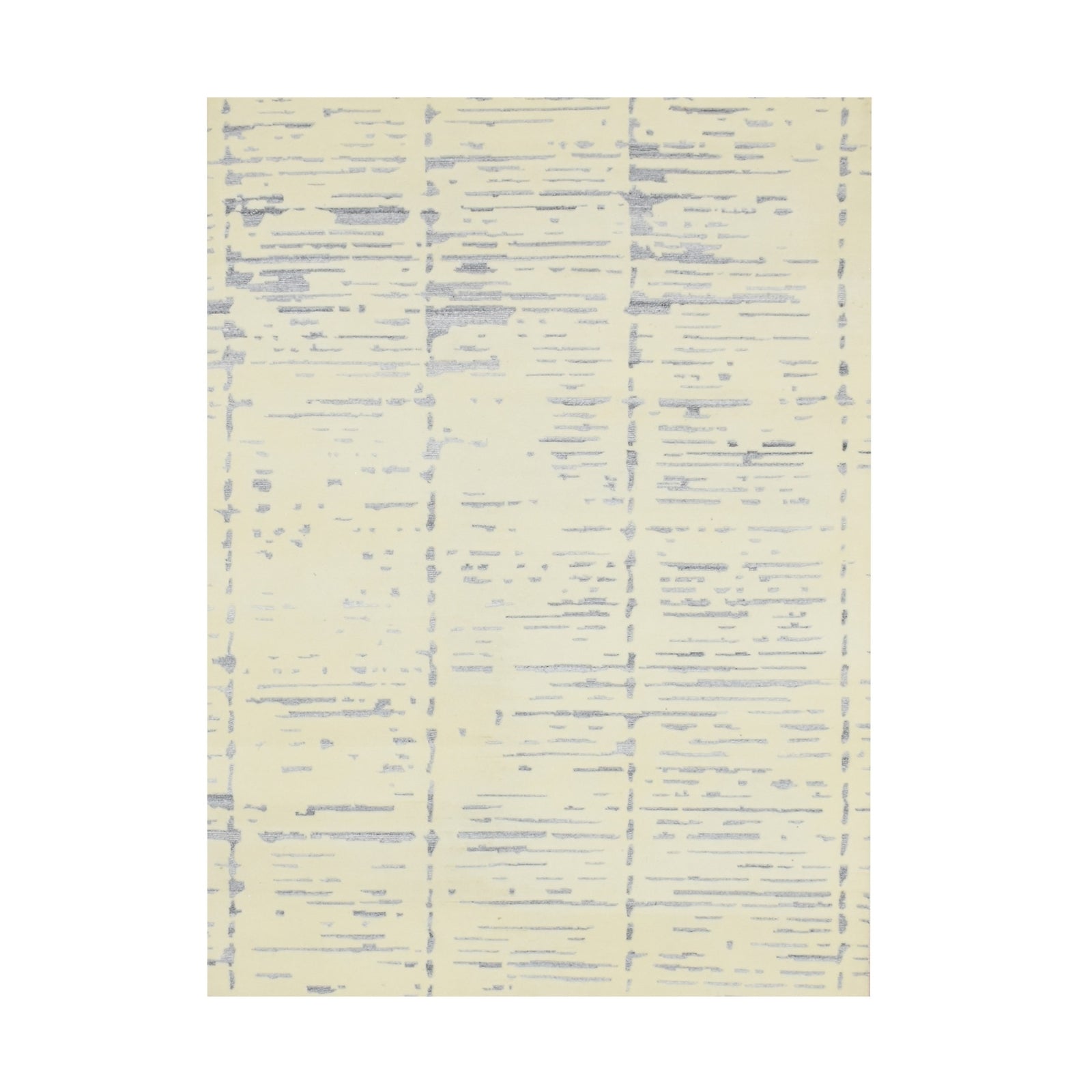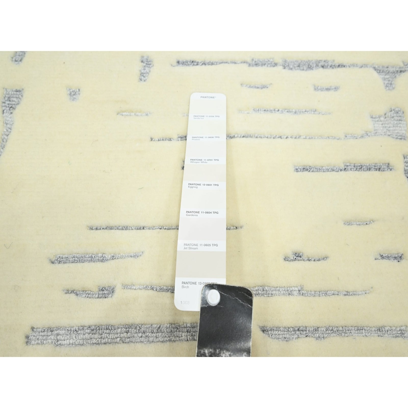 5'X7' Ivory Modern Design Textured Weave Hand Knotted Wool & Silk Rug