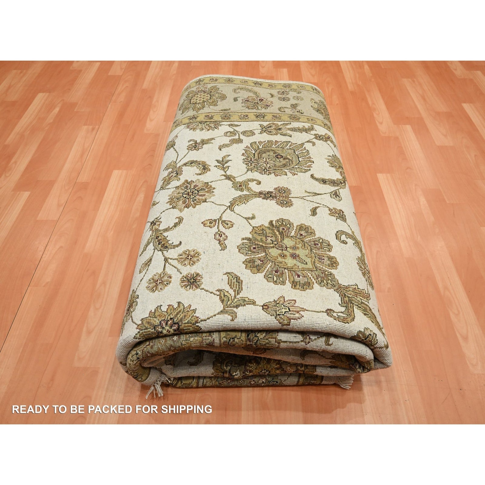 7'8"X10' White Rajasthan With Leaf Design Wool And Silk Hand Knotted Rug