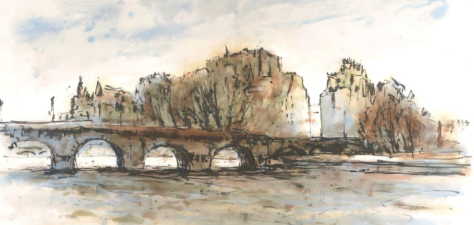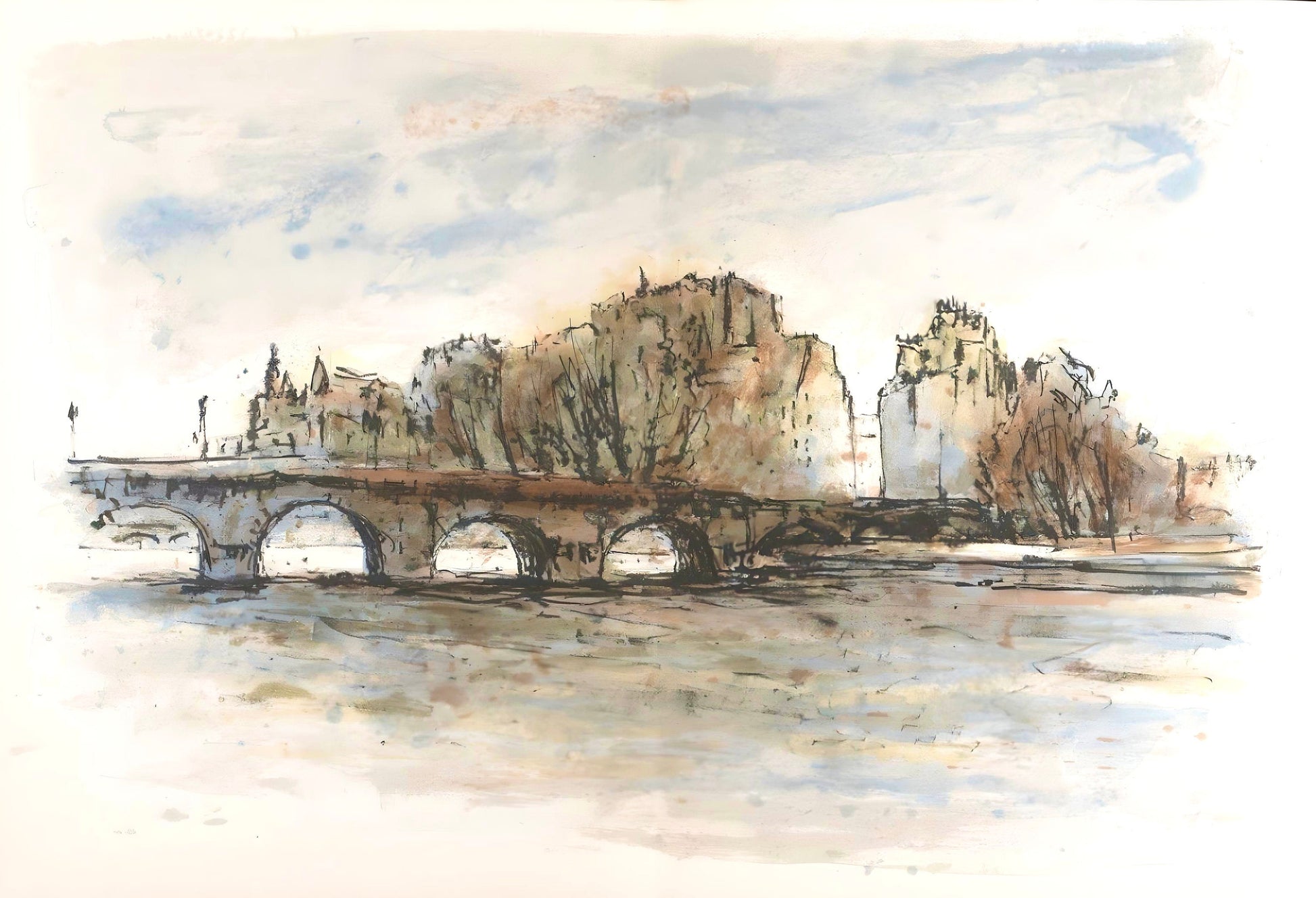Aim Daniel Steinlen, Le Pont-Neuf, Au Temps De Paris Seine, Lithograph