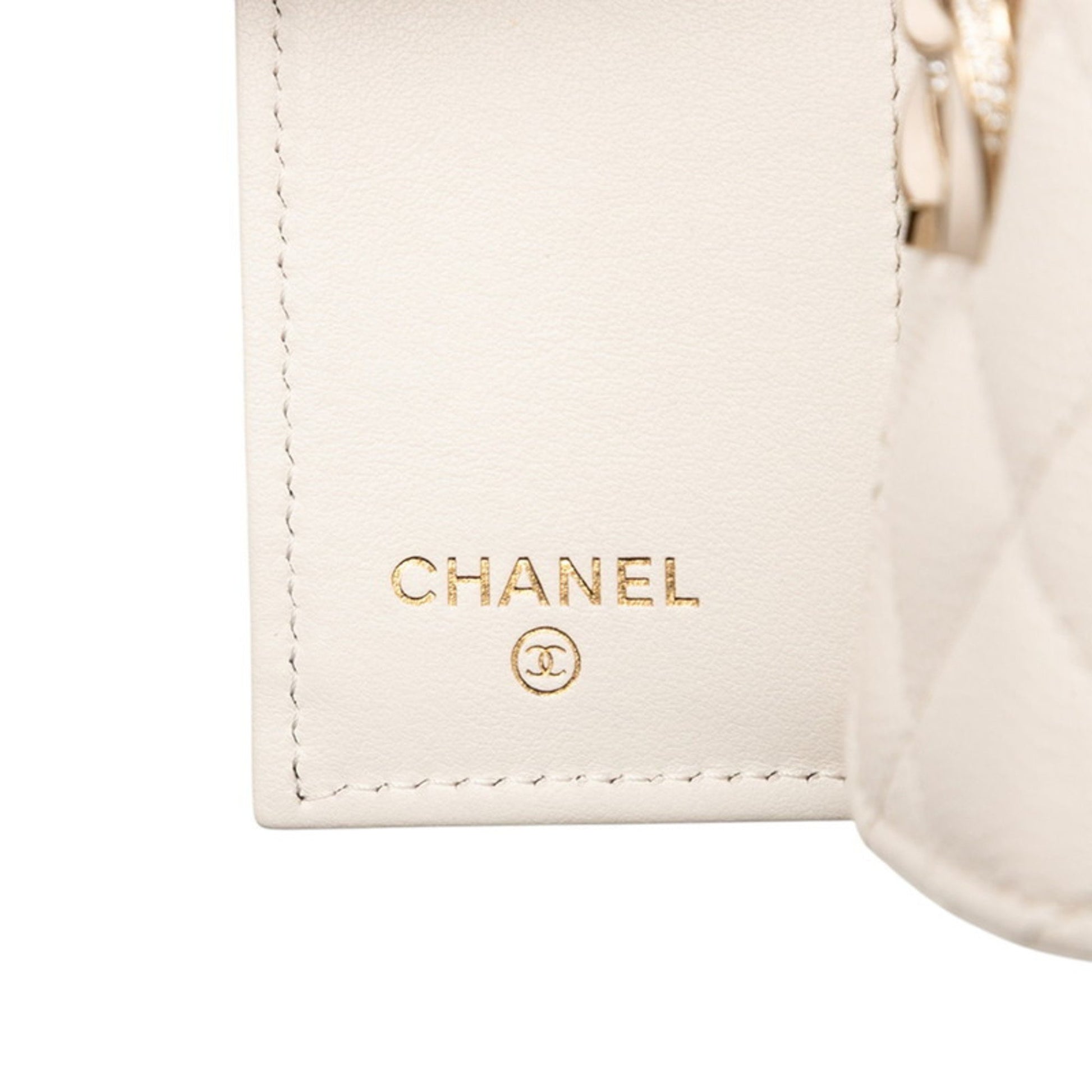 Chanel Matelasse Coco Mark Rhinestone Tri-Fold Wallet In White Caviar Leather