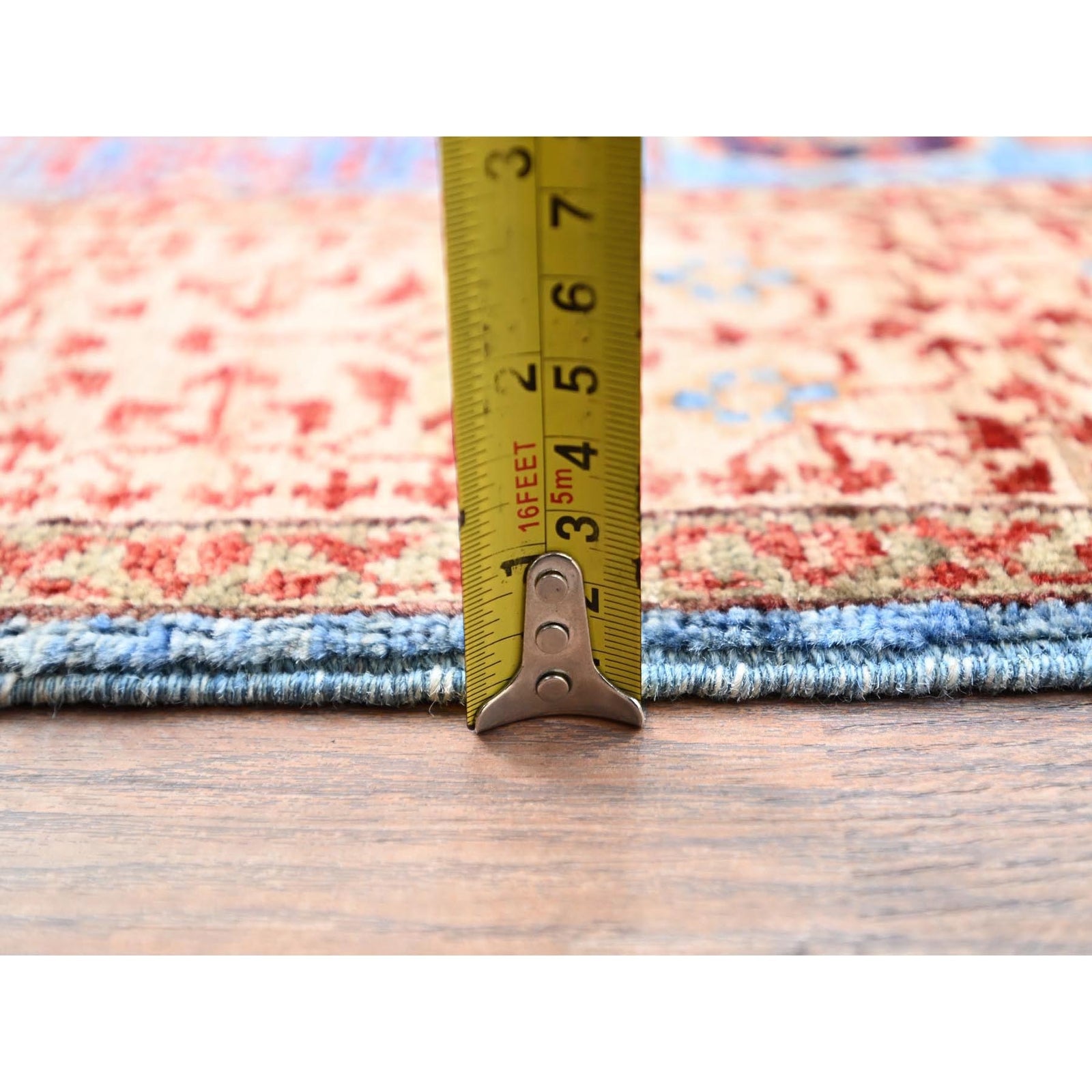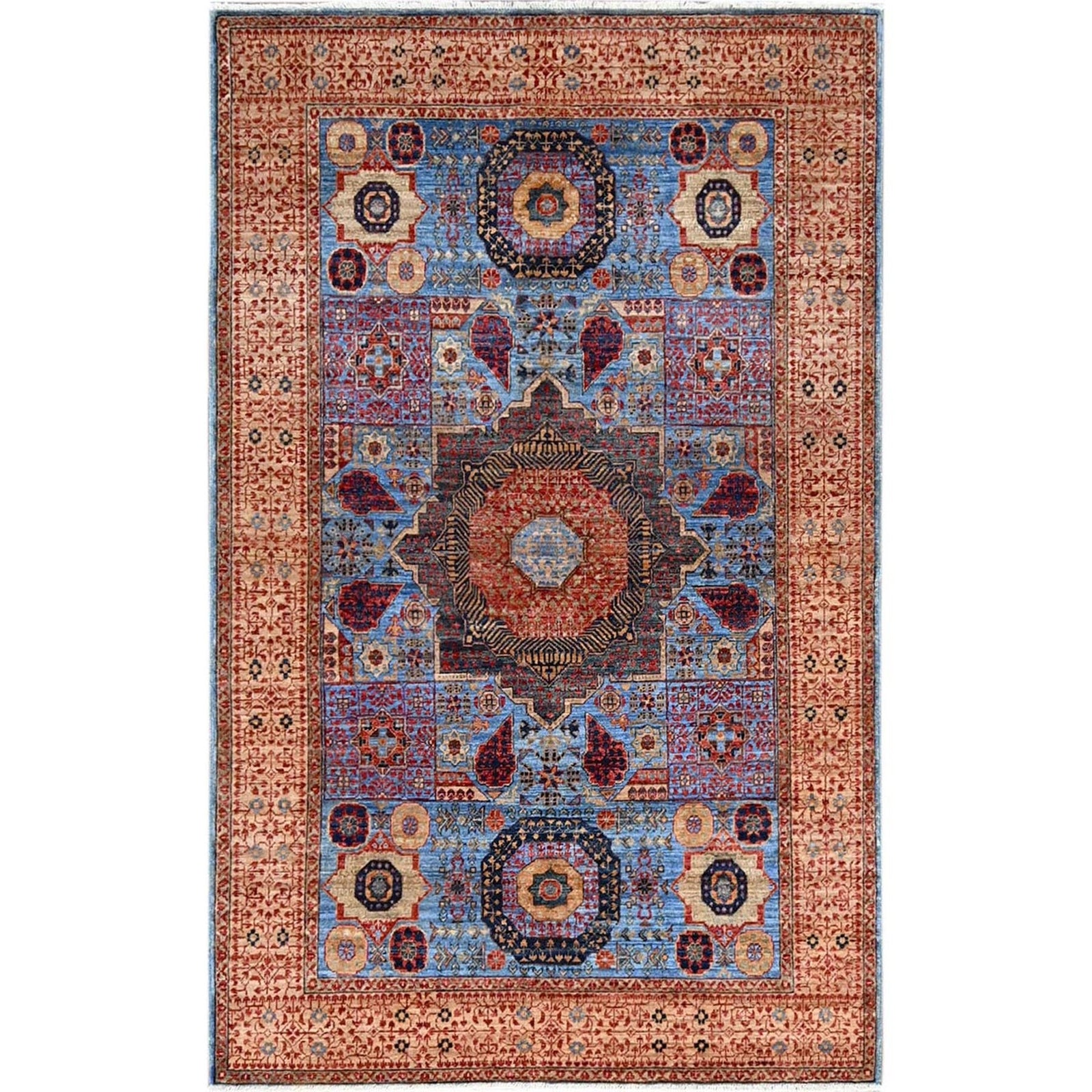 4'X6'5" Azure Blue Hand Knotted Wool Medallions Design Mamluk Dynasty Rug