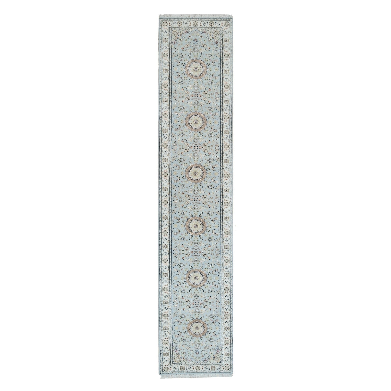 2'9"X14' Beau Blue Nain Design 250 Kpsi Wool Hand Knotted Xl Runner Rug