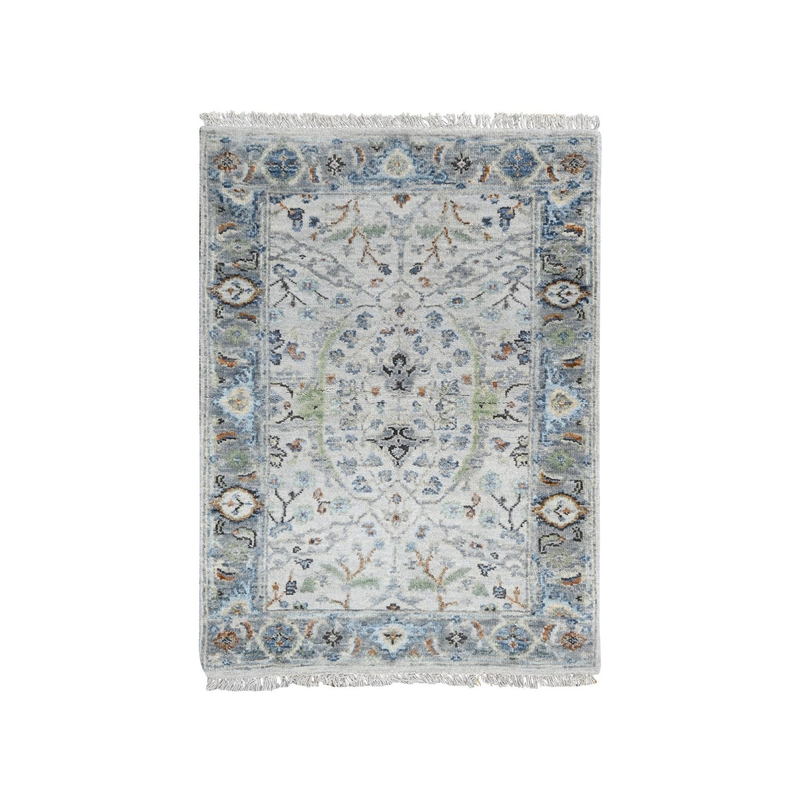 2'X3' Ice Gray Oushak Natural Wool Hand Knotted Mat Rug