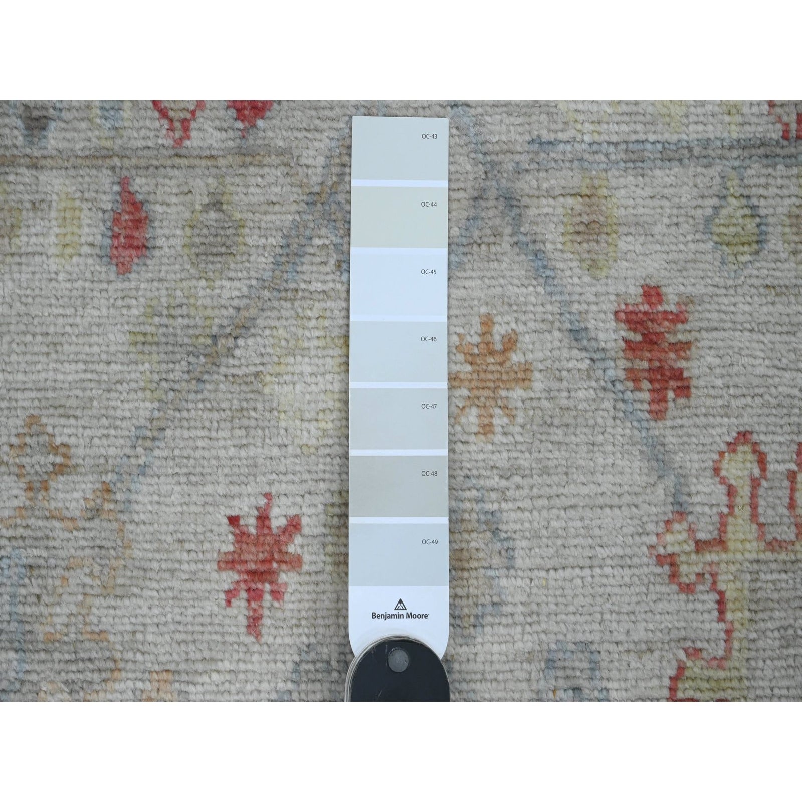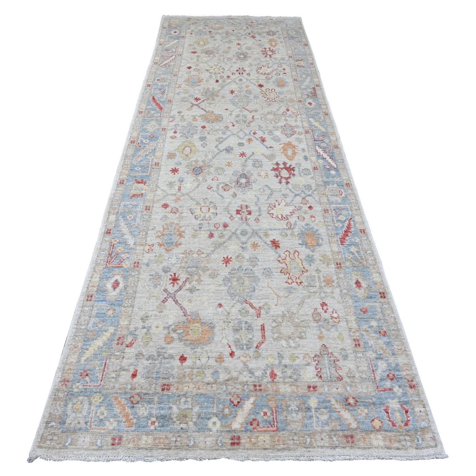 4'X12'3" White Angora Oushak Leaf Design Hand Knotted All Wool Runner Rug