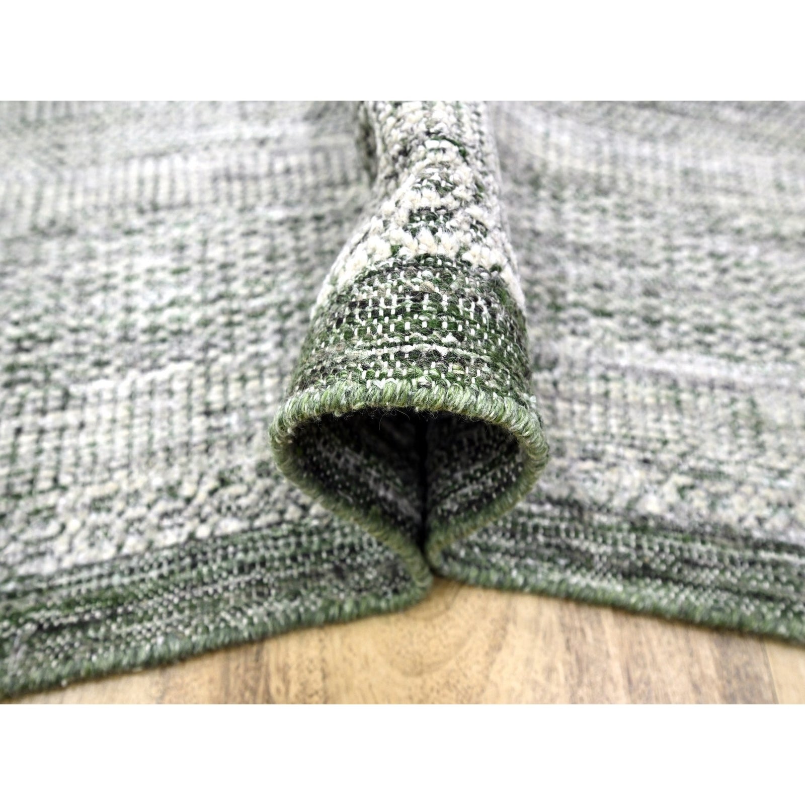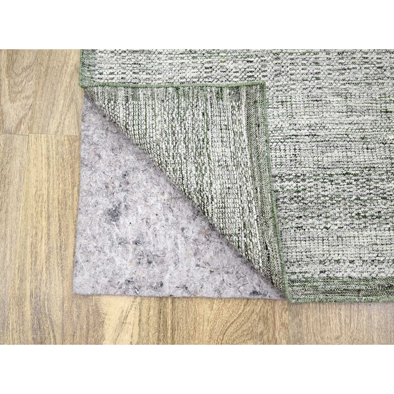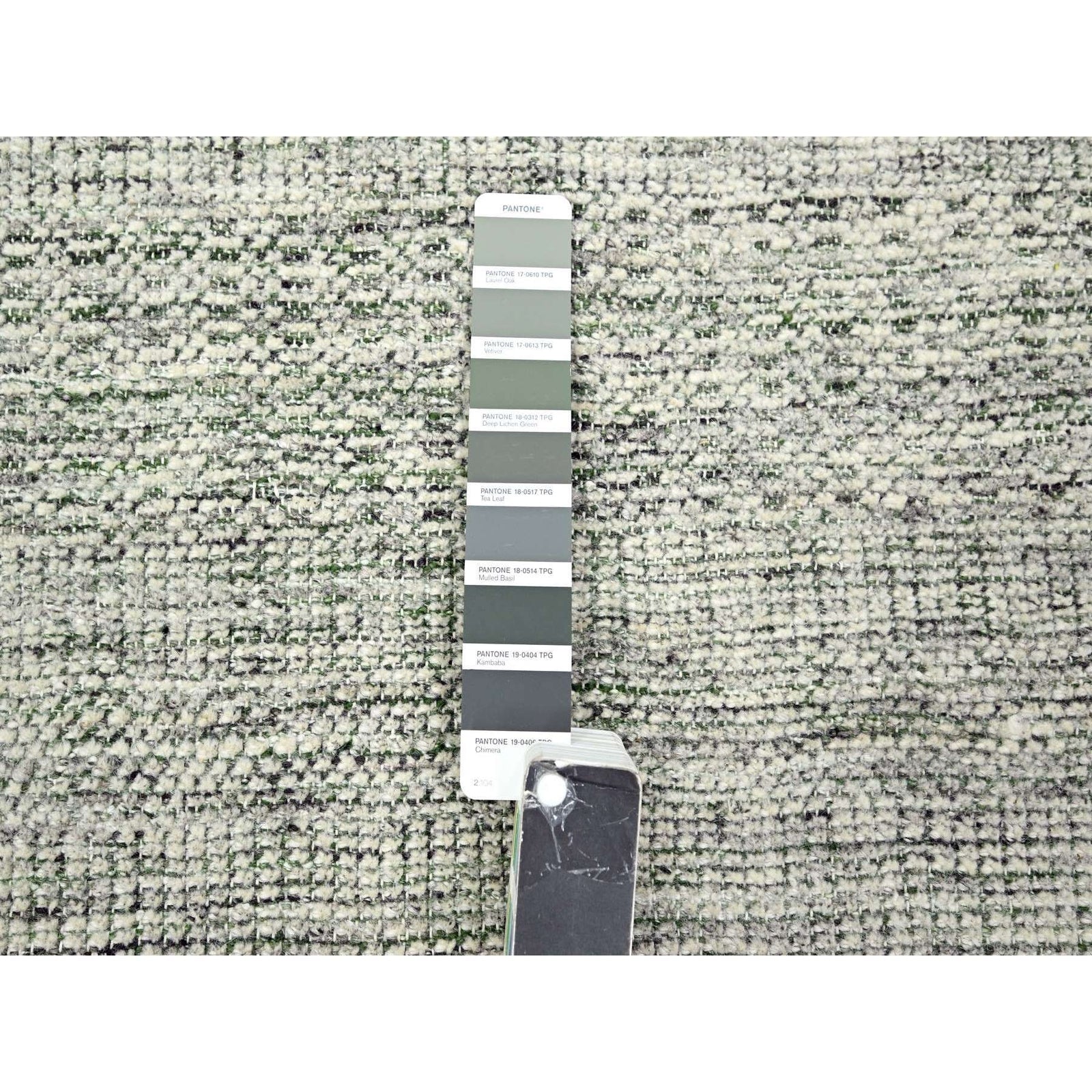 9'9"X13'10" White With Green Oxidized Grass Design Hand Knotted Wool Rug