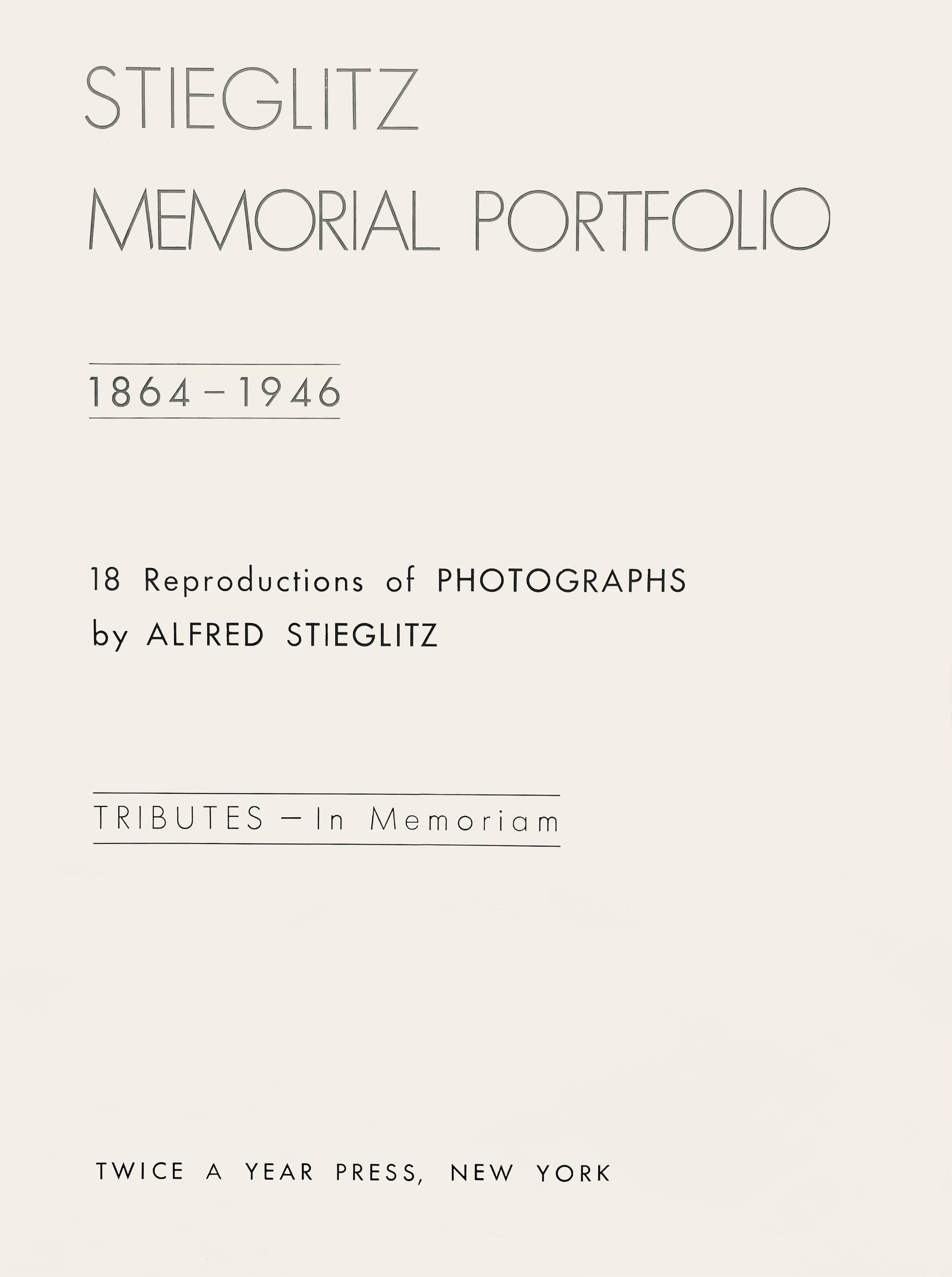Notes: From the folio, Alfred Stieglitz Memorial Portfolio 1864-1946, 1947.