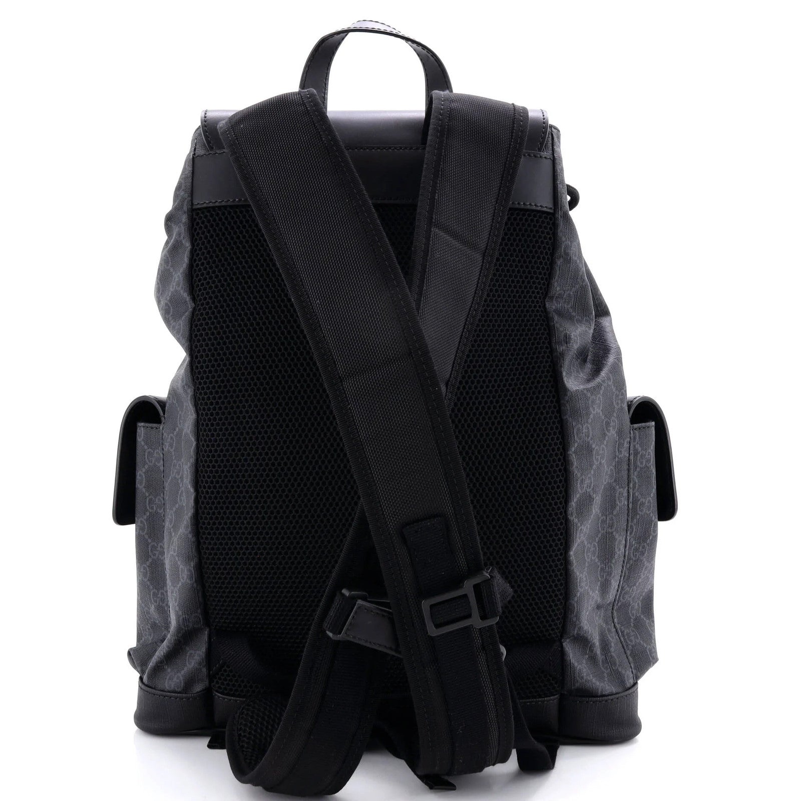 Gucci Double Pocket Buckle Backpack Gg Coated Canvas Large