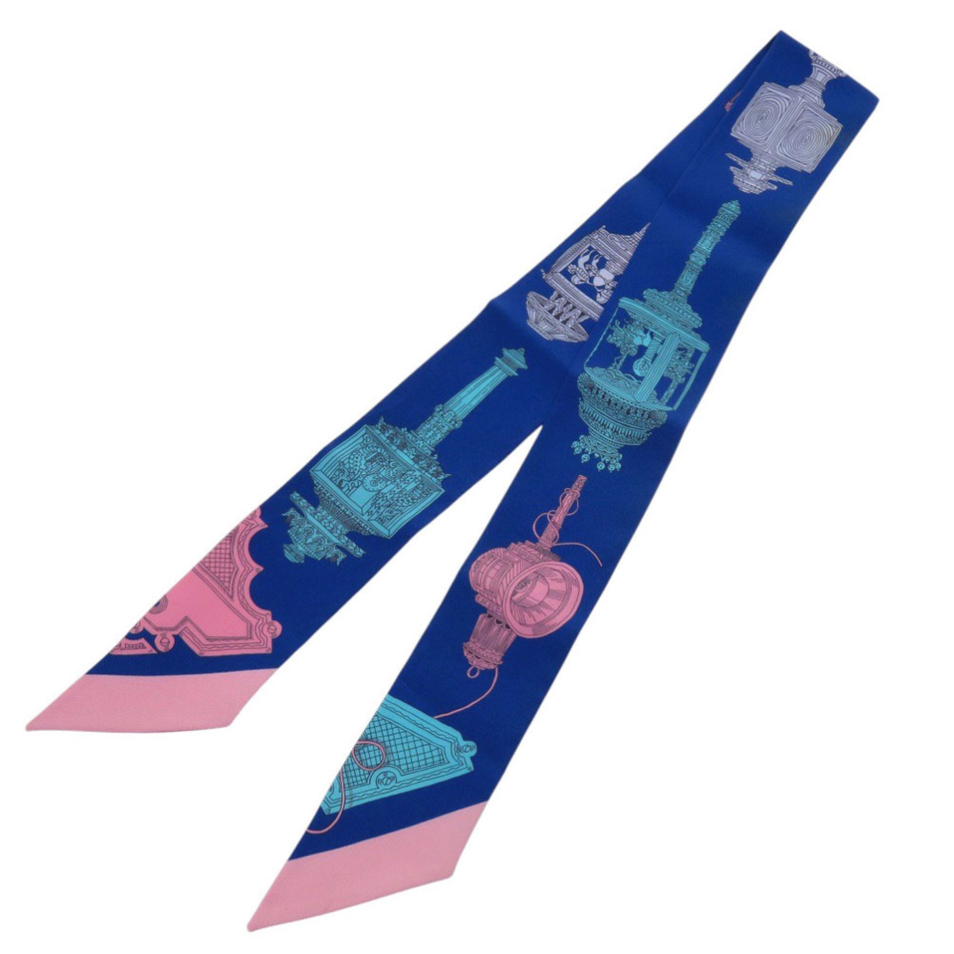 Herms Twilly Merveilleuses Lanternes Silk Blue Scarf Muffler 0819 Hermes