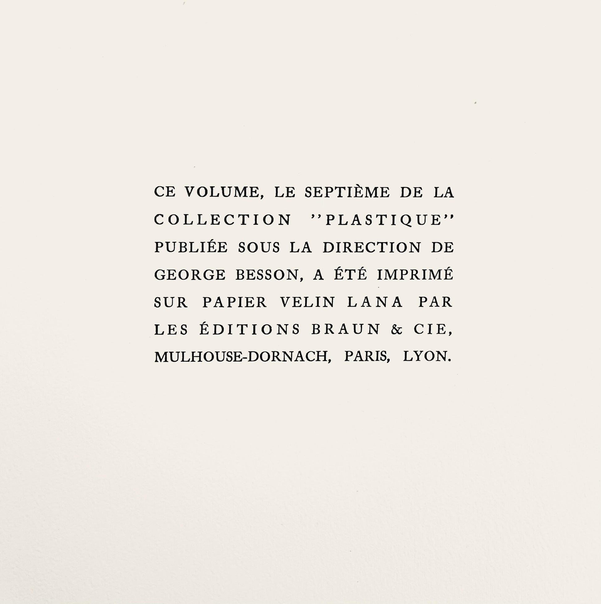 Published by George Besson, Paris; printed by Les ditions Braun & Cie, Mulhouse-Dornach, Paris, Lyon. Excerpted from the album (translated from French), This album, the seventh of the "Plastique" collection published under the direction of George Besson, was printed on vlin Lana paper by Braun & Cie, Mulhouse-Dornach, Paris, Lyon.