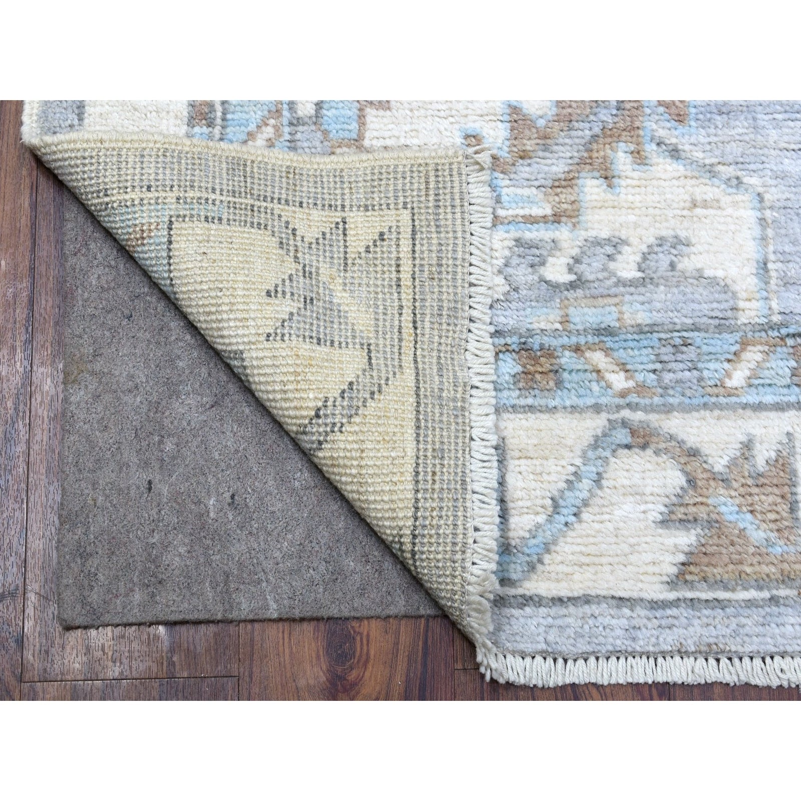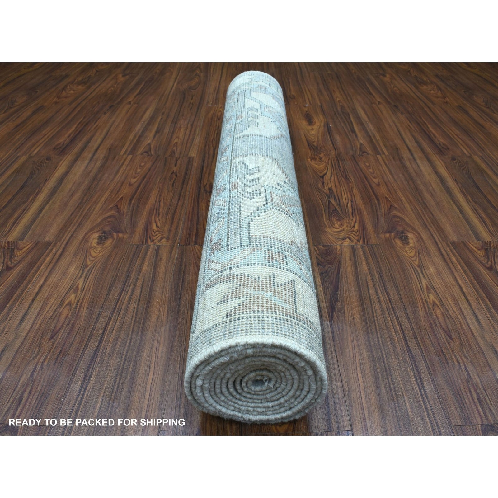 3'10"X12'1" Gray Anatolian Angora Oushak Hand Knotted Wool Runner Rug