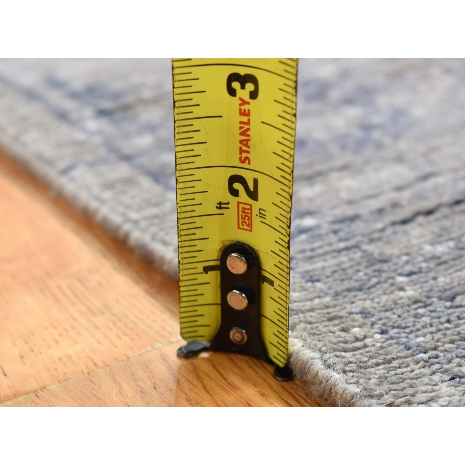 2'6"X5'10" Gray Broken Zoroastrian Design Silk Hand Knotted Runner Rug
