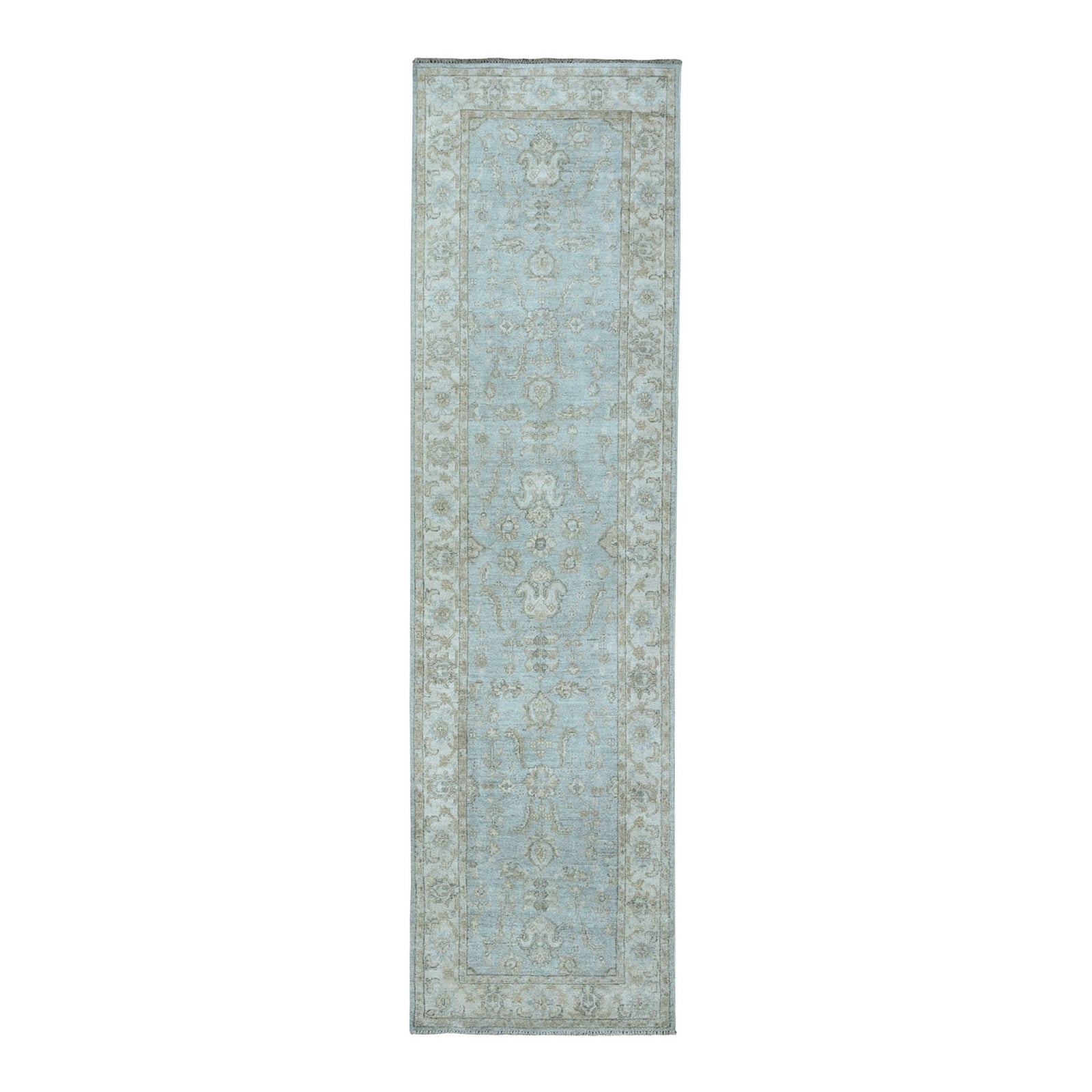 2'7"X9'9" White Wash Peshawar Pure Wool Hand-Knotted Oriental Runner Rug