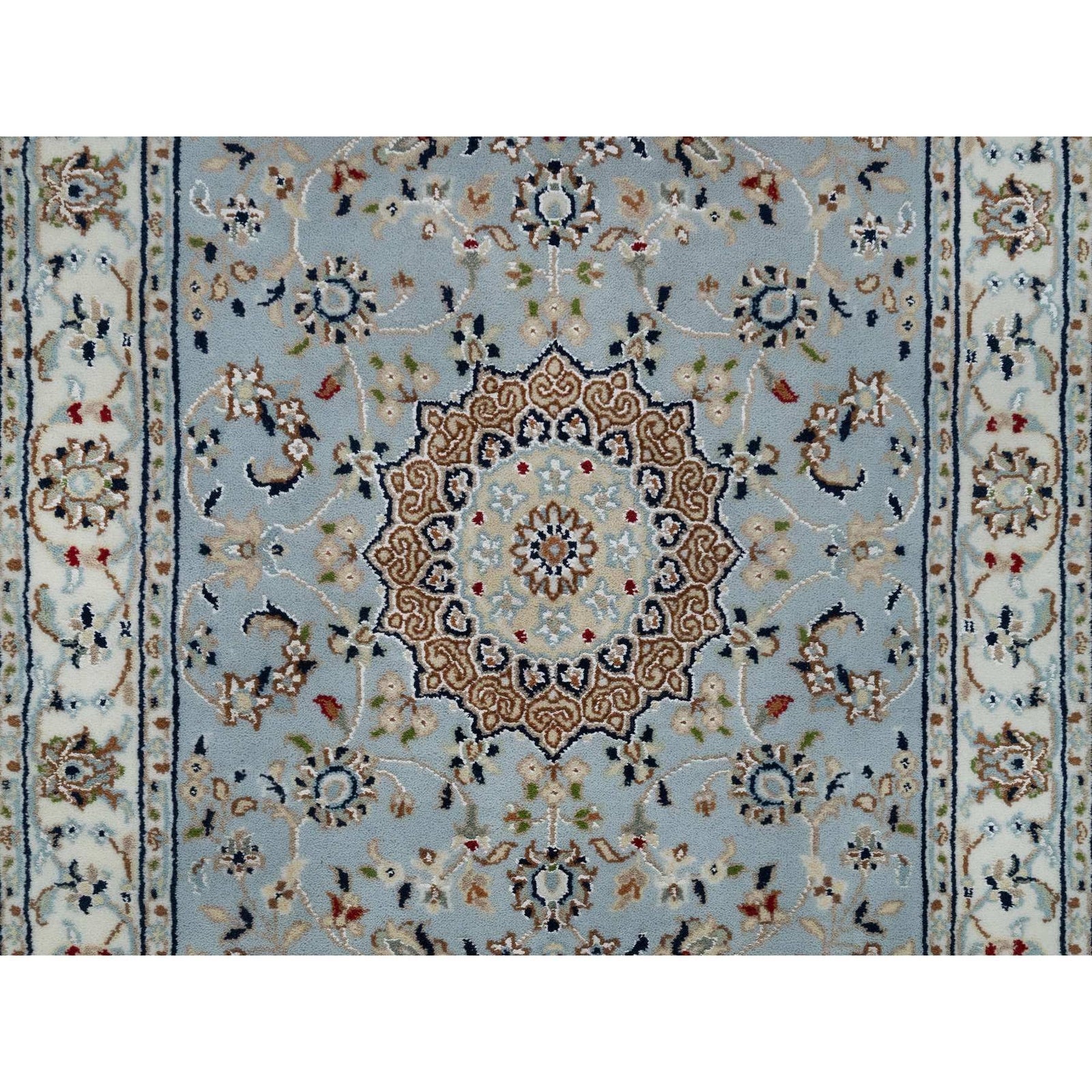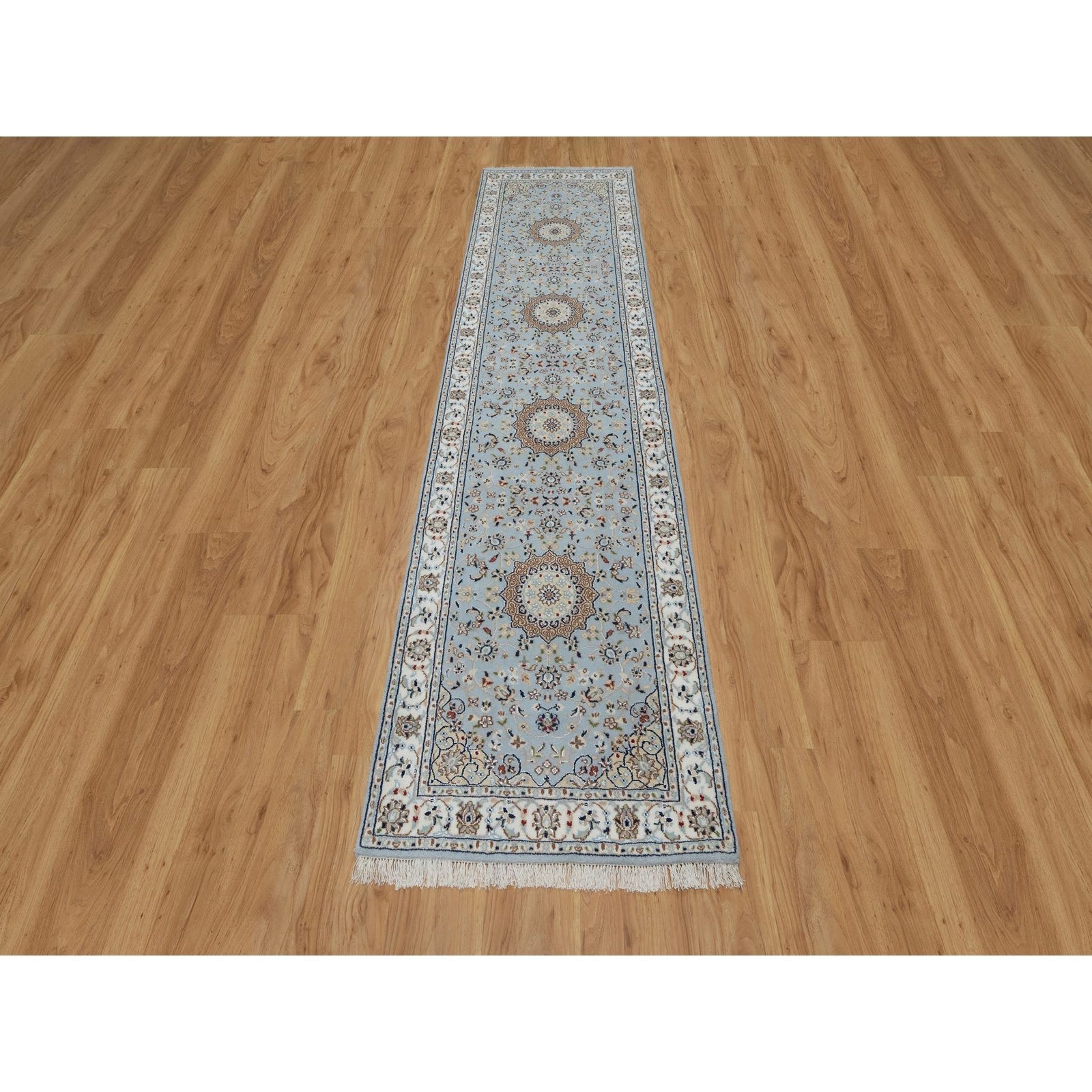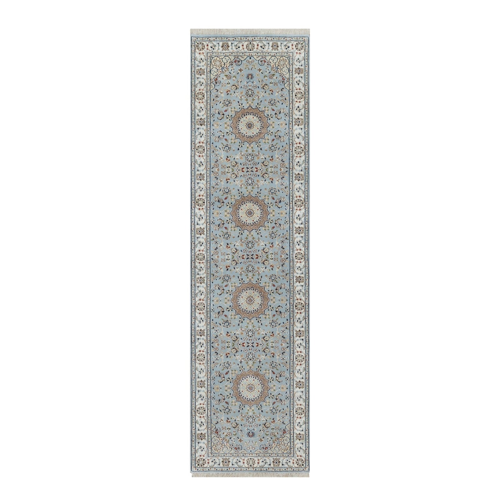 2'8"X10'1" Beau Blue 250 Kpsi Wool And Silk Hand Knotted Nain Runner Rug